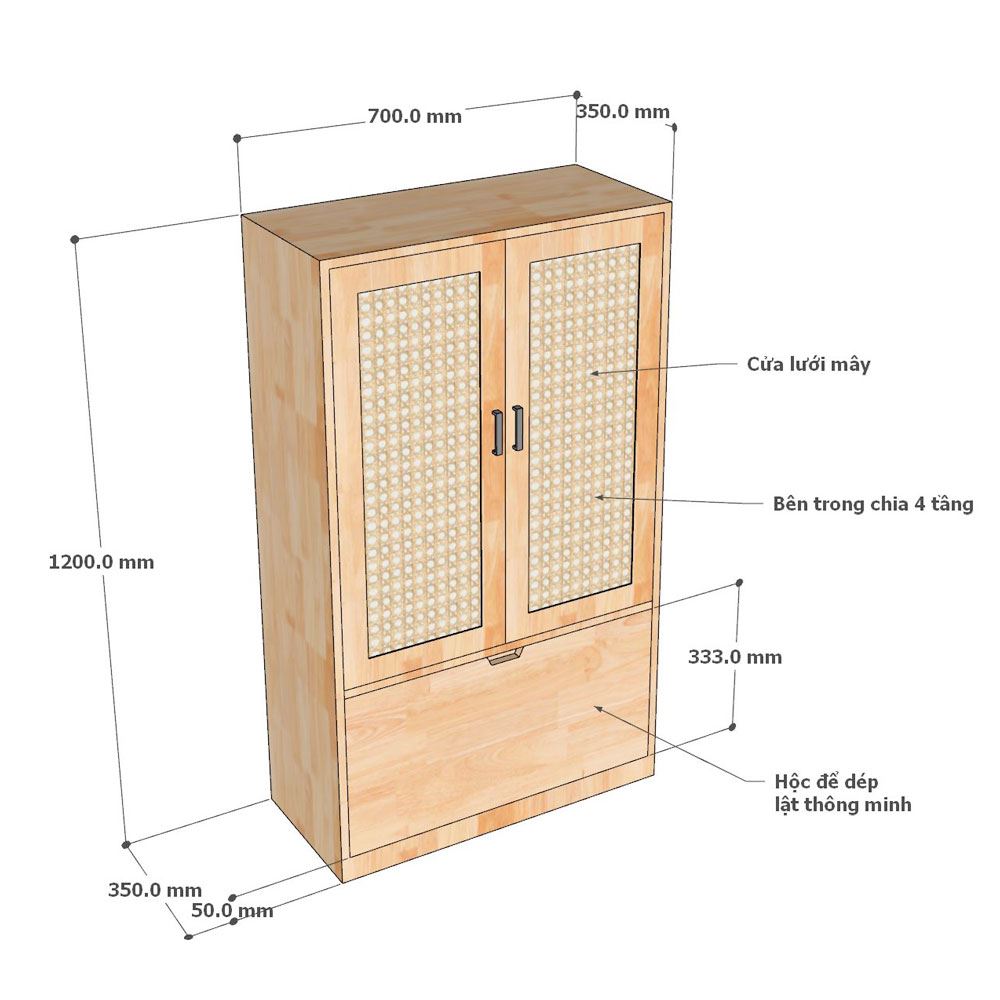 Tủ để giày 70x35x120cm gỗ cao su KG68083
