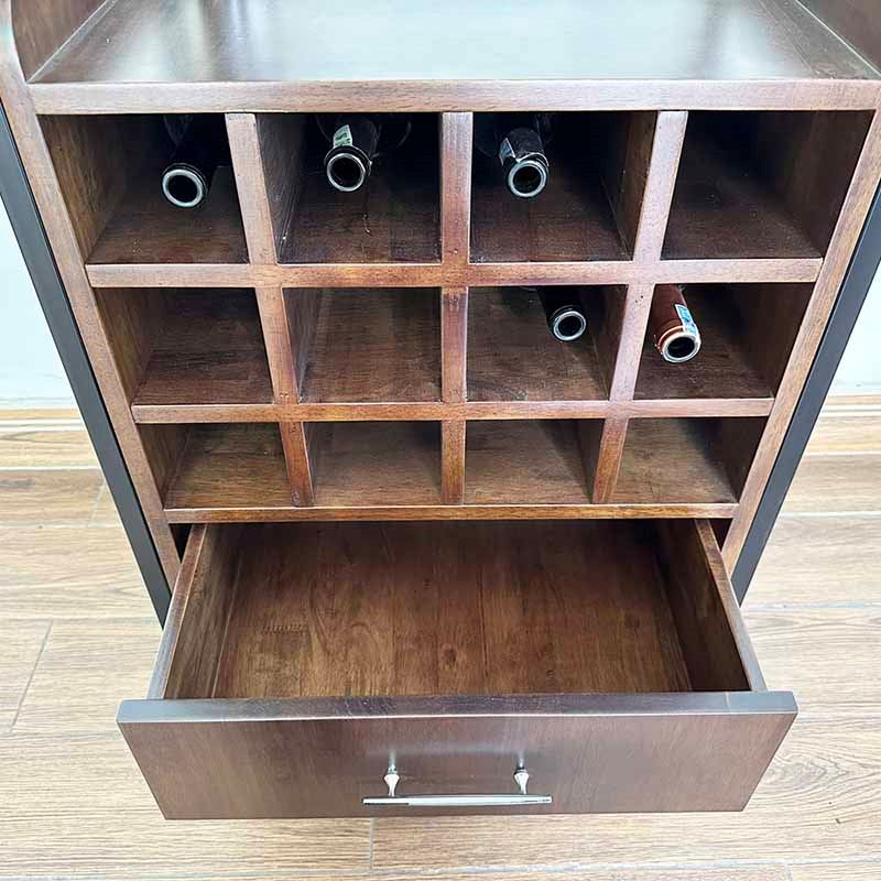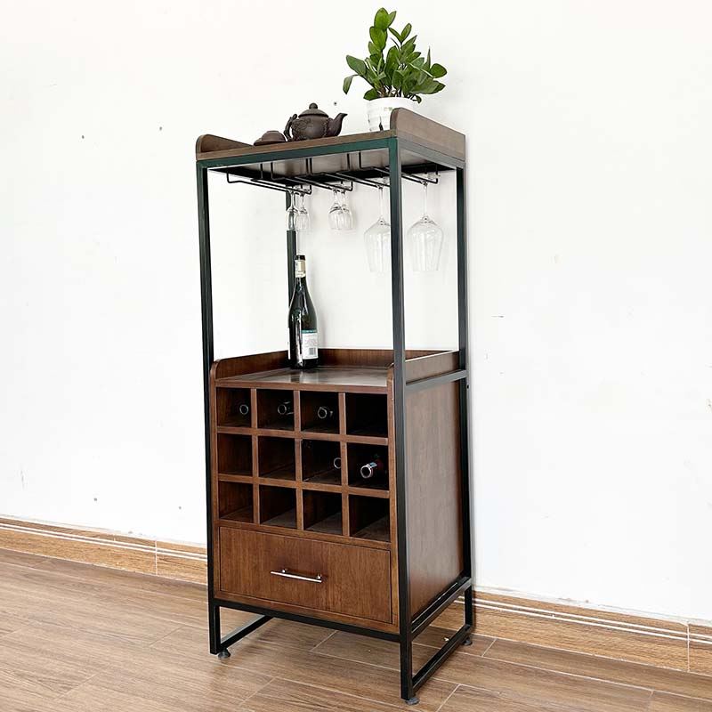 Tủ đựng rượu gỗ tự nhiên có khay để ly vang TPA018 với thiết kế thông minh, chia ngăn tầng hợp lý kết hợp các ngăn đựng rượu và ly giúp bạn lưu trữ hay trưng bày các món đồ của mình một cách dễ dàng hơn, kiểu dáng hiện đại phù hợp với không gian phòng ăn hay nhà bếp nhà ở hay các căn hộ cư hiện nay. Chất liệu chính được sử dụng là gỗ cao su tiêu chuẩn AA được xử lý và hoàn thiện chống thấm nước, chống cong vênh đảm bảo độ bền cao, sơn màu gỗ óc chó hoặc sơn PU 5 màu sắc khác nhau tuỳ vào nhu cầu mỗi người.