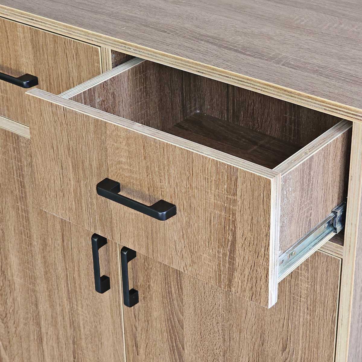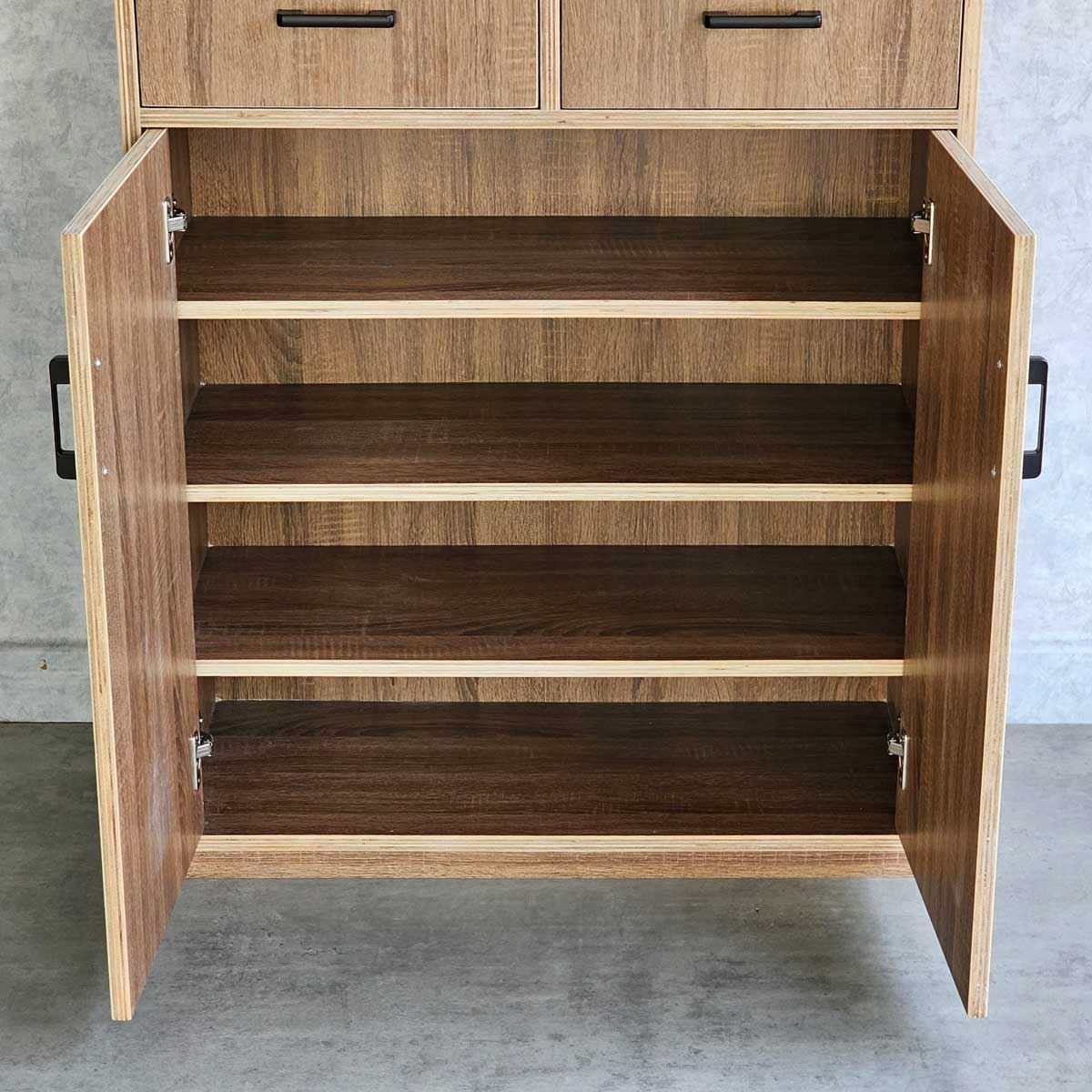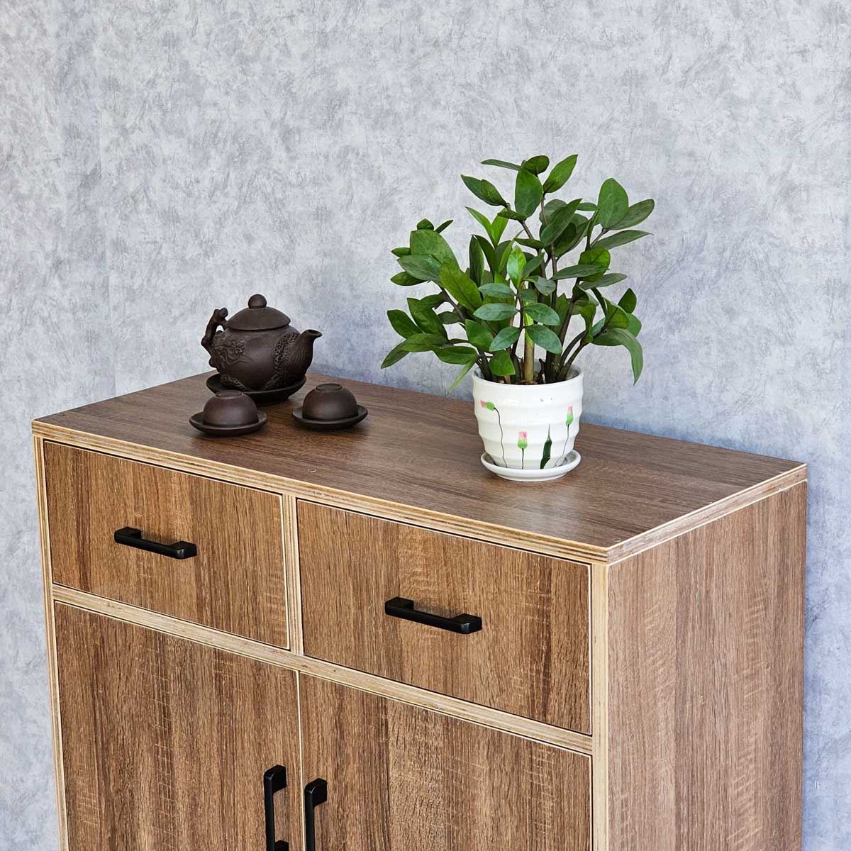 Với thiết kế 2 ngăn kéo bên trên và ngăn tủ 2 cánh với 4 tầng bên dưới, tủ giày này có thể chứa được số lượng giày dép lớn, đáp ứng nhu cầu của cả gia đình. Tủ giày thích hợp đặt tại vị trí ra vào của nhà, là nơi tiếp xúc nhiều với bụi bẩn và ẩm ướt. Do đó, việc lựa chọn một chiếc tủ giày có khả năng chống thấm nước là rất quan trọng. Tủ giày gỗ plywood vân giả gỗ với khả năng chống thấm nước vượt trội sẽ giúp bảo vệ giày dép của bạn khỏi những tác động của môi trường, giúp giữ cho giày dép luôn sạch sẽ và bền đẹp.