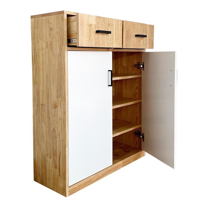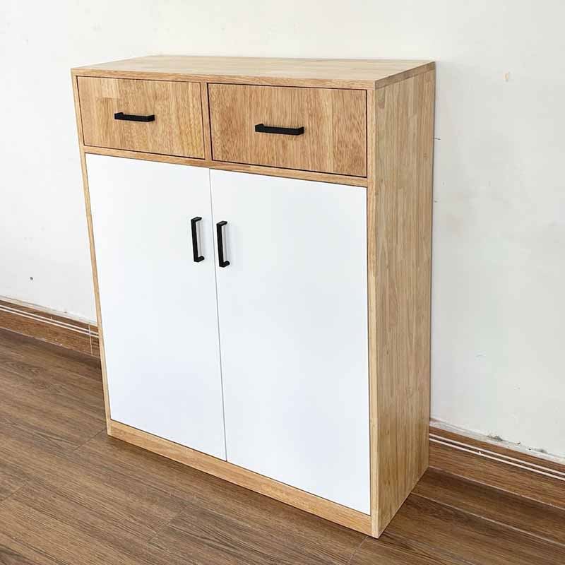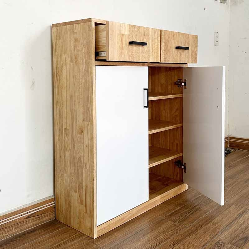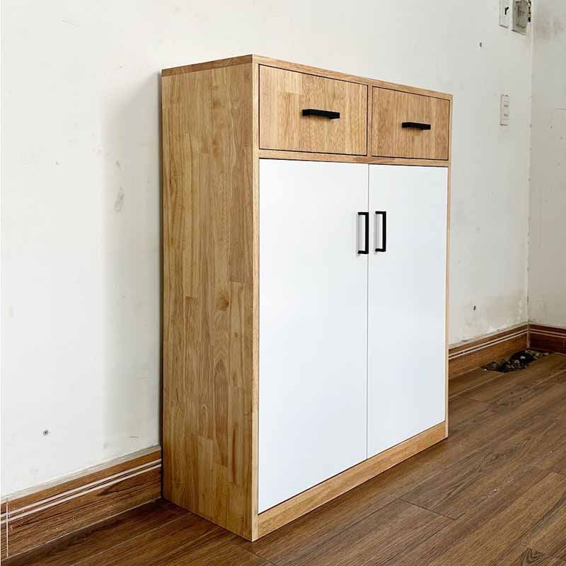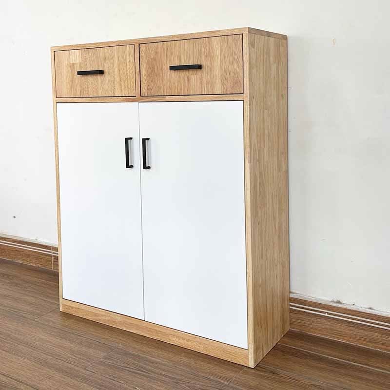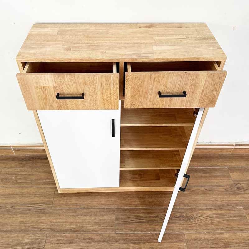 Tủ giày 4 tầng có ngăn kéo gỗ tự nhiên KG68065 được sản xuất từ gỗ cao su tiêu chuẩn AA, xử lý và hoàn thiện PU chống thấm nước, giúp bạn dễ dàng vệ sinh để giữ cho tủ luôn sạch sẽ. Với thiết kế phân chia 4 tầng giúp tăng thêm không gian tối đa để được nhiều giày hơn. Bên cạnh đó phía trên tủ còn được trang bị thêm 2 hộc tủ để bạn thuận tiện cất trữ và sử dụng những đồ vật được sử dụng thường xuyên một cách dễ dàng nhất.