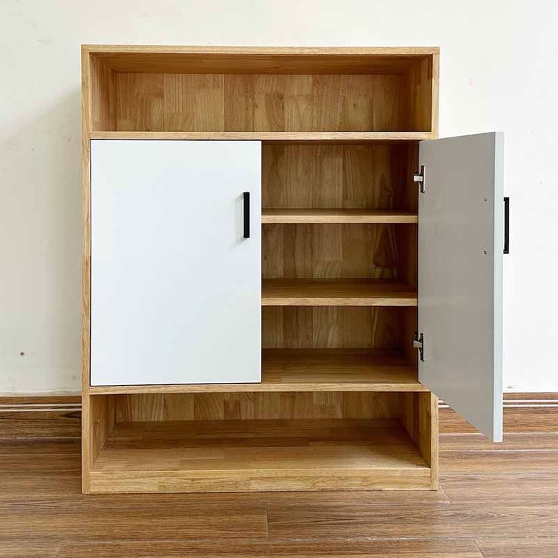 Tủ giày 5 tầng gỗ tự nhiên KG68063với chất liệu xung quanh tủ được làm từ gỗ cao su AA tiêu chuẩn xuất khẩu, đã qua xử lý chống cong vênh, chống thấm nước. Tủ được chia thành 5 tầng trong đó 3 tầng giữa có cửa và 2 tầng hệ mở giúp bạn bảo quản đồ đạc tốt hơn bởi các tác động xung quanh cũng như dễ dàng tìm kiếm, sử dụng khi cần thiết.
