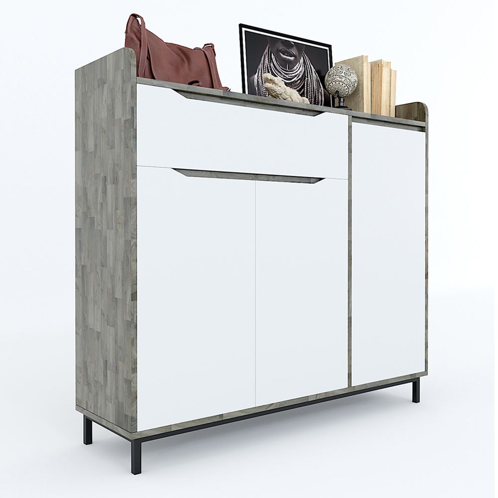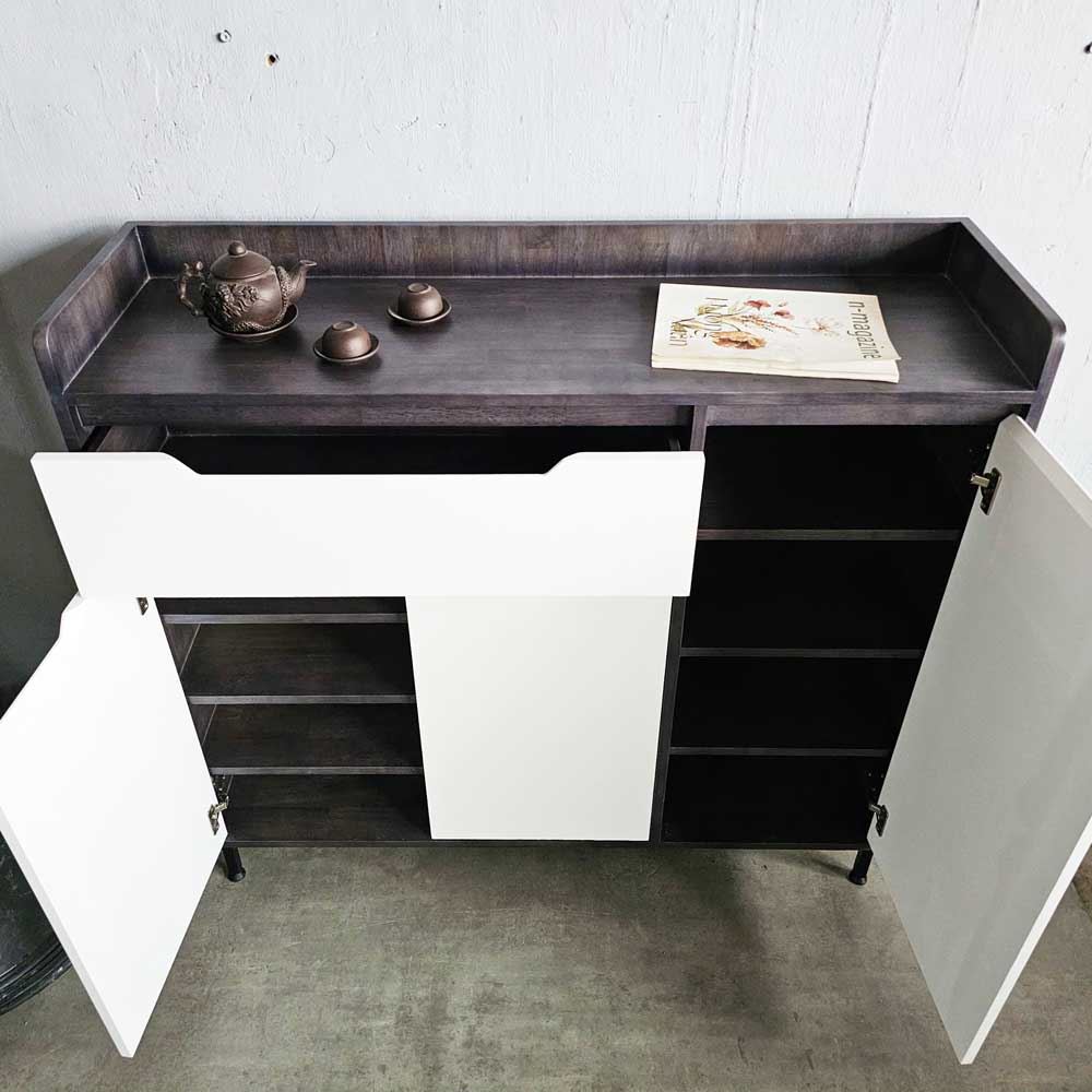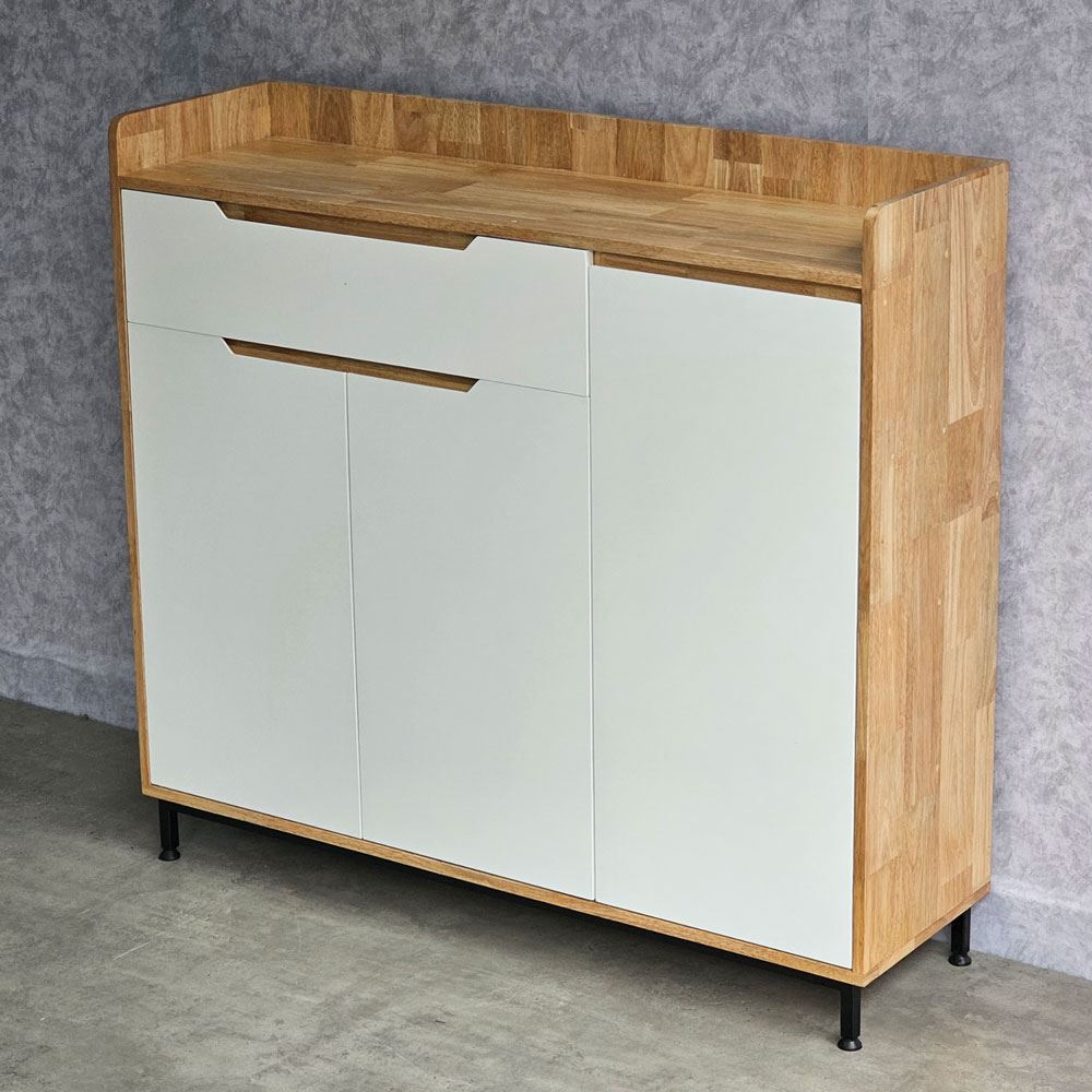 Tủ giày KG68033 thiết kế 2 cánh bên trong chia 3 tầng và 1 cánh chia 4 tầng giúp tăng khả năng lưu trữ tối đa. Bên cạnh chức năng để giày dép, chúng tôi muốn chiếc tủ để giày của mình tiện dụng hơn bằng cách thêm một ngăn kéo phía trên, ở đây bạn có thể cất giữ nhiều vật dụng nhỏ khác mà không sợ bị thất lạc. Bạn cũng có thể tận dụng tầng phía trên để trang trí nội thất phòng khách thêm cho sinh động hơn.