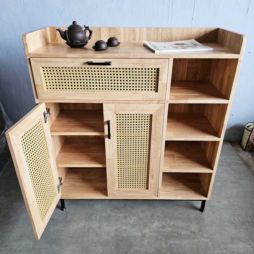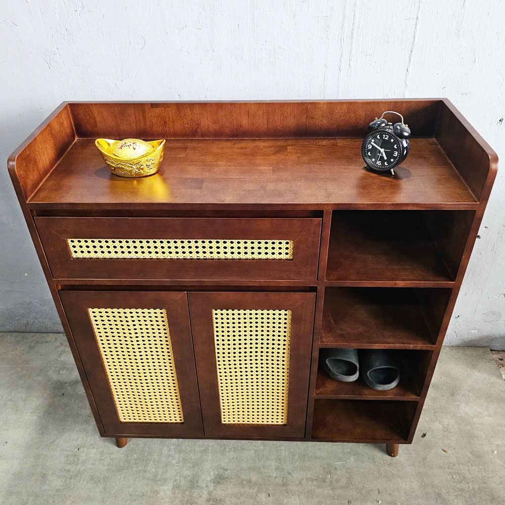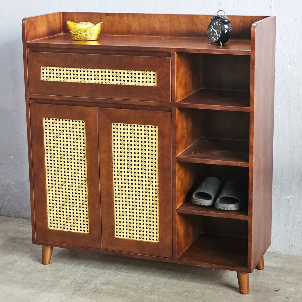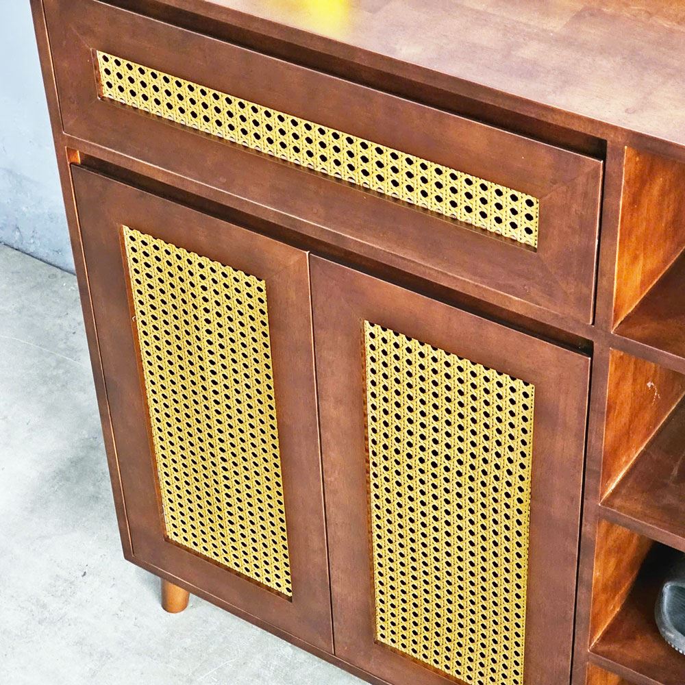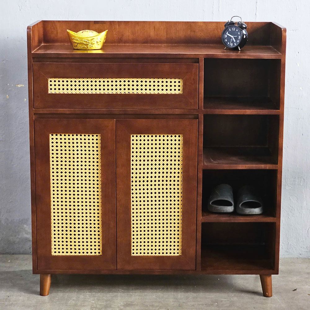 Tủ giày kết hợp kệ để đồ cửa lưới mây KG68055 với chất liệu chính được sử dụng là gỗ cao su tiêu chuẩn AA được xử lý và hoàn thiện chống thấm đảm bảo bền bỉ theo thời gian, điểm nhấn cửa lưới mây mắt cáo mang đến sự mới lạ, độc đáo cho không gian của bạn. Tủ kệ giày KG68055 với thiết kế thông minh, phân chia các hệ để giày dép và kệ để đồ hợp lý, kích thước 1m vừa phải phù hợp với mọi không gian nhà ở hoặc căn hộ hiện nay.