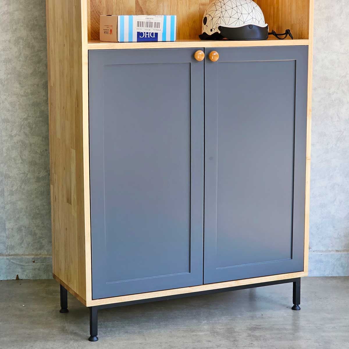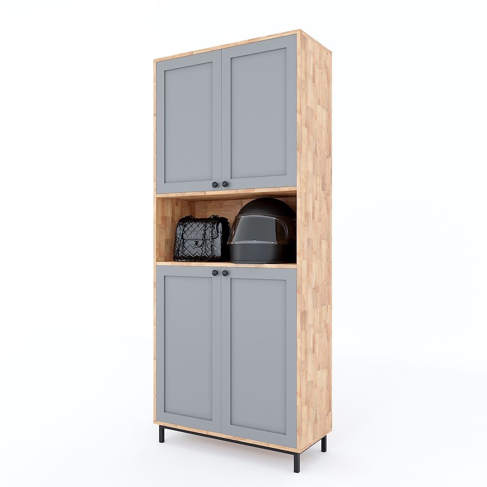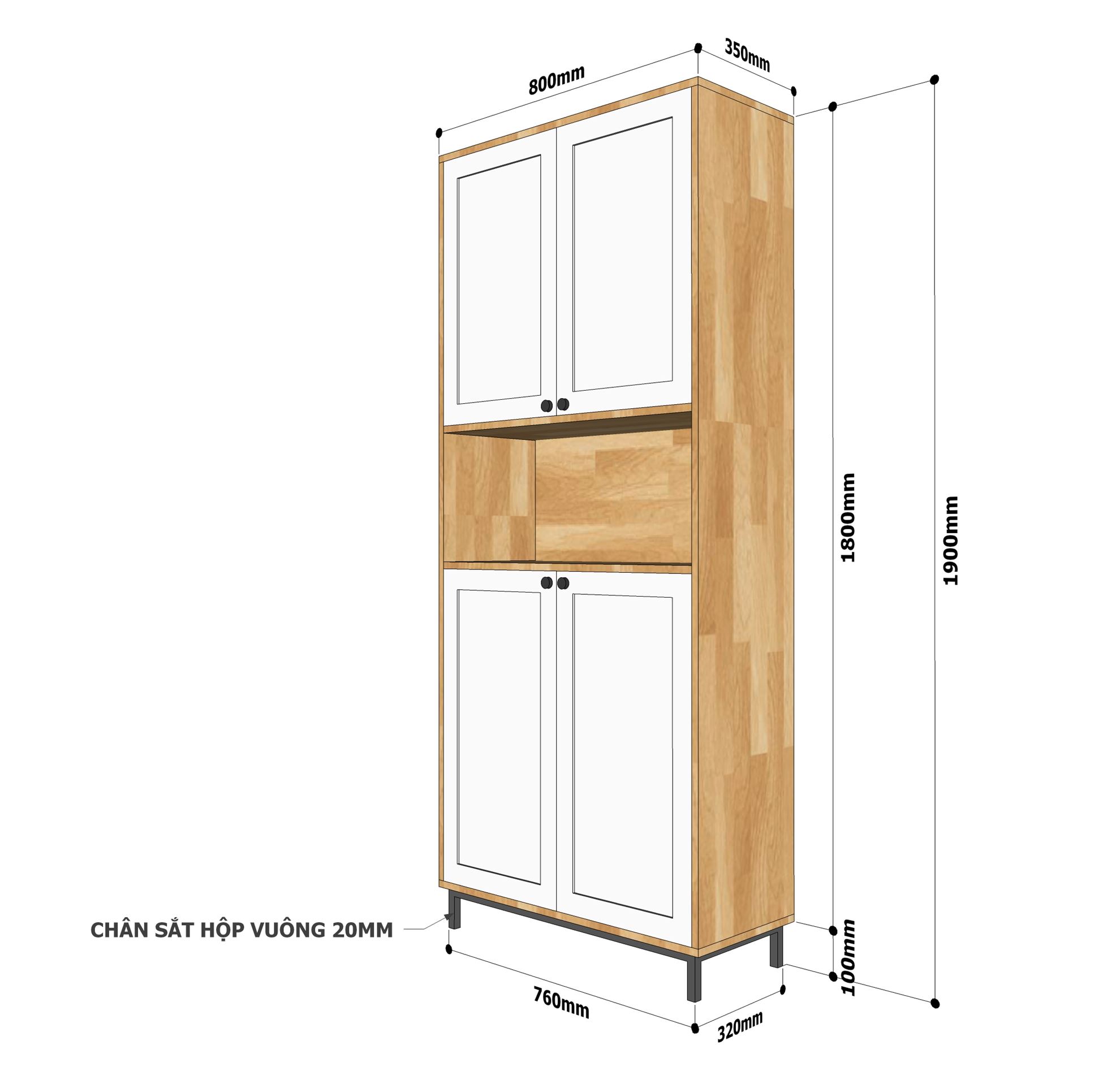 Tủ giày 4 tầng kết hợp tủ để đồ gỗ cao su chân sắt
