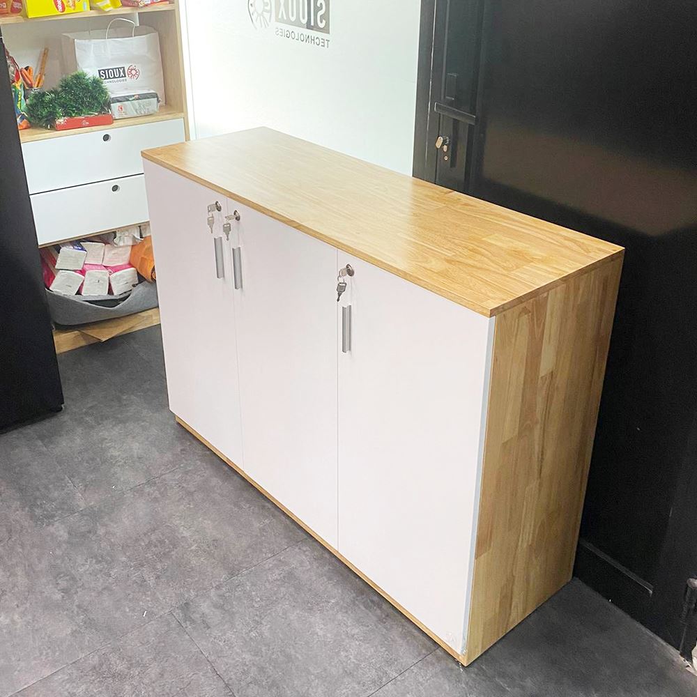 Tủ hồ sơ 2 tầng cửa mở gỗ cao su 120x40x87cm THS68027 với chất liệu xung quanh tủ được làm từ gỗ cao su AA tiêu chuẩn xuất khẩu, đã qua xử lý chống cong vênh. Cửa tủ được làm từ gỗ MDF chống ẩm, sơn màu trắng đẹp mắt. Hệ tủ kệ hồ sơ văn phòng THS68027 với thiết kế có cửa nên có thể để ở khắp mọi vị trí, kích thước tương đối nhỏ gọn chiều ngang 120cm và chiều rộng chuẩn 40cm chiều cao 87cm chia 2 tầng phù hợp với mọi nhu cầu lưu trữ hồ sơ