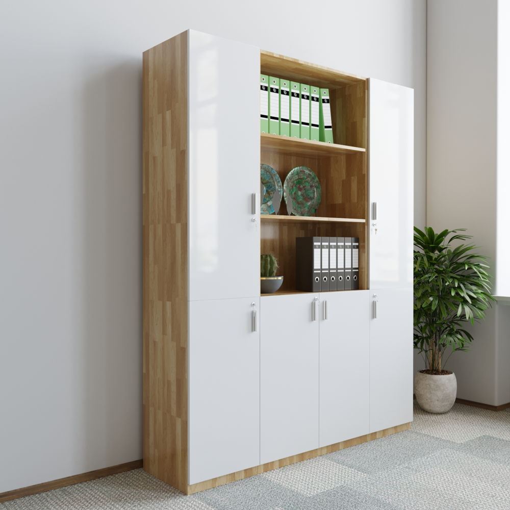 Tủ hồ sơ 3 cụm 160x40x220cm gỗ cao su cửa trắng THS68021 với thiết kế 3 cụm gồm 2 tủ bé hai bên kích thước 40x40x220cm và tủ giữa kích thước 80x40x220cm tạo thành 1 khối với thiết kế đẹp mắt, hệ giữa không cửa trên tạo nên thiết kế cân đối cho hệ tủ. Với chất liệu gỗ cao su tiêu chuẩn AA dày 17mm sơn PU hoàn thiện, cửa trắng gỗ mdf chống ẩm sơn pU màu trắng đẹp mắt.