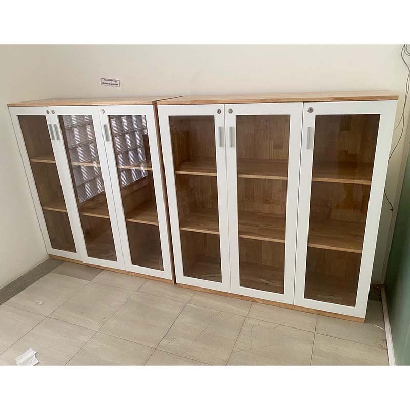 Tủ hồ sơ gỗ cửa kính có khóa viền trắng đẹp mắt