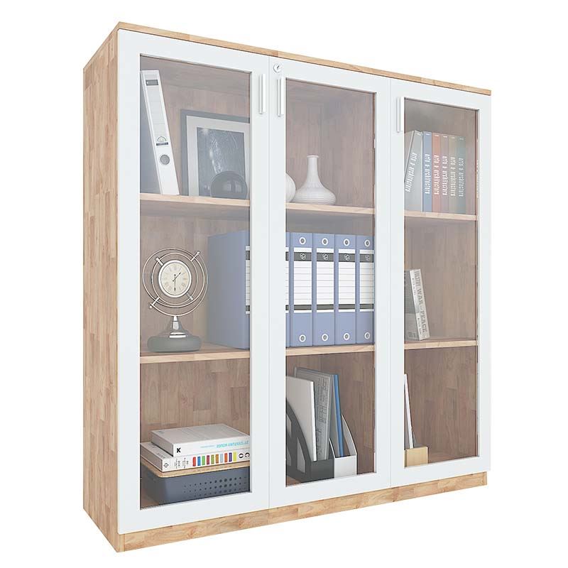 Tủ hồ sơ 3 tầng cửa kính gỗ cao su THS68036 với chất liệu xung quanh tủ được làm từ gỗ cao su AA tiêu chuẩn xuất khẩu, đã qua xử lý chống cong vênh, mối mọt tiên tiến. Cửa tủ kính có khóa giúp bạn bảo quản giấy tờ tốt hơn bởi các tác động xung quanh cũng như dễ dàng tìm kiếm, sử dụng khi cần thiết. Hệ tủ kệ hồ sơ văn phòng THS68036 với thiết kế có cửa nên có thể để ở khắp mọi vị trí, kích thước tương đối nhỏ gọn chiều ngang 120cm và chiều rộng chuẩn 40cm chiều cao 120cm chia 3 tầng phù hợp với mọi nhu cầu lưu trữ hồ sơ