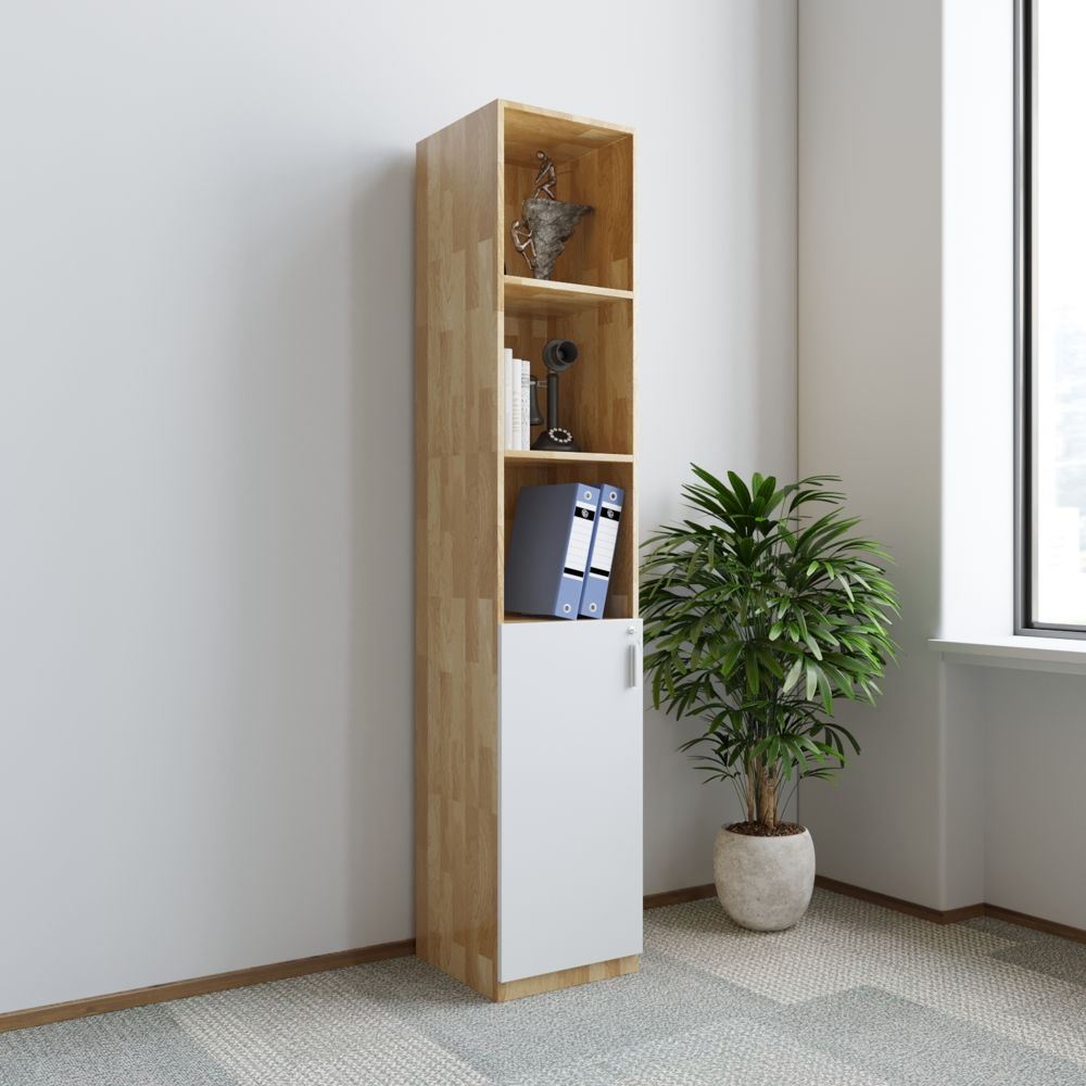Tủ hồ sơ 40x40x220cm gỗ cao su 1 cửa dưới THS68020 với chất liệu gỗ cao su tiêu chuẩn AA dày 17mm sơn Pu màu sắc đẹp kết hợp với cửa gỗ MDF sơn trắng phía trên là các đợt kệ để trống không cửa . Mẫu tủ THS68020 với kích thước nhỏ có thể tận dụng nhiều không gian hoặc kết hợp với các mẫu tủ khác của Homeoffice tạo nên thiết kế đẹp mắt.