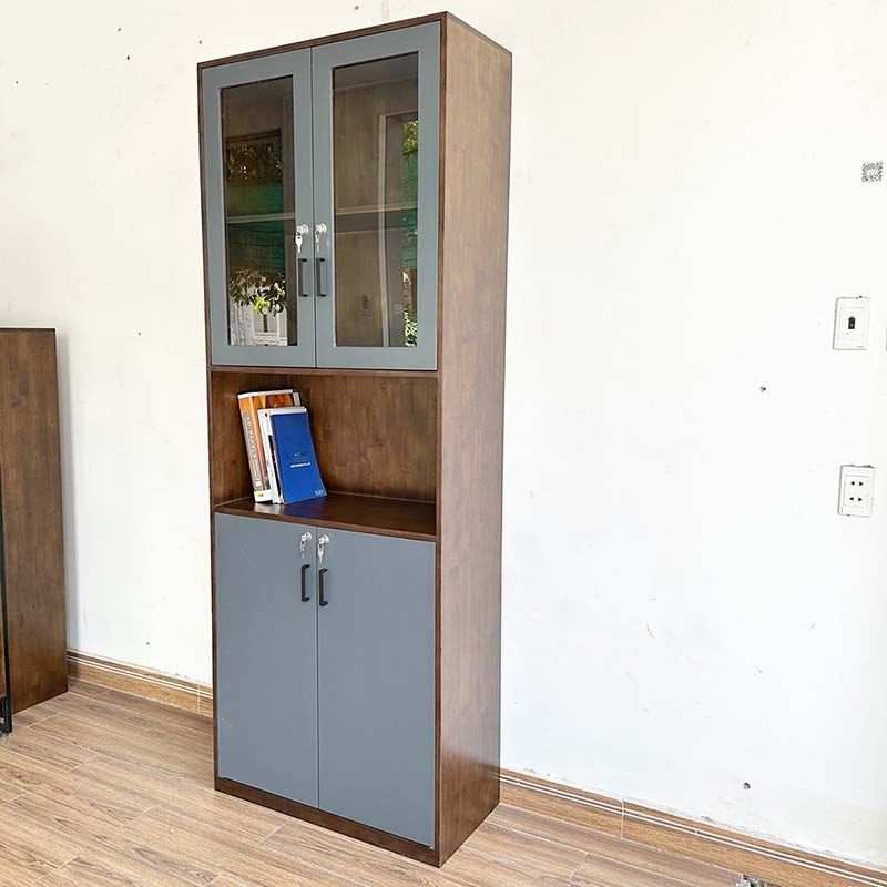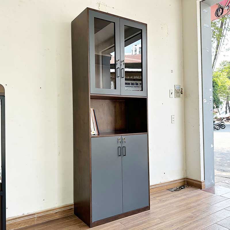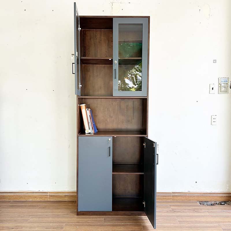 Tủ hồ sơ 5 tầng gỗ tự nhiên cửa kính THS68057 với thiết kế đơn giản có tấm lưng nên có thể để ở khắp mọi vị trí, thiết kế gọn 80cm chiều ngang và chiều rộng chuẩn 40cm với chiều cao 220cm chia 5 tầng phù hợp với mọi nhu cầu lưu trữ hồ sơ. Hệ cửa mở trên dưới với cửa kính phía và 1 kệ không gian mở trên giúp bạn thuận tiện trong việc lưu trữ giấy tờ thường xuyên sử dụng.