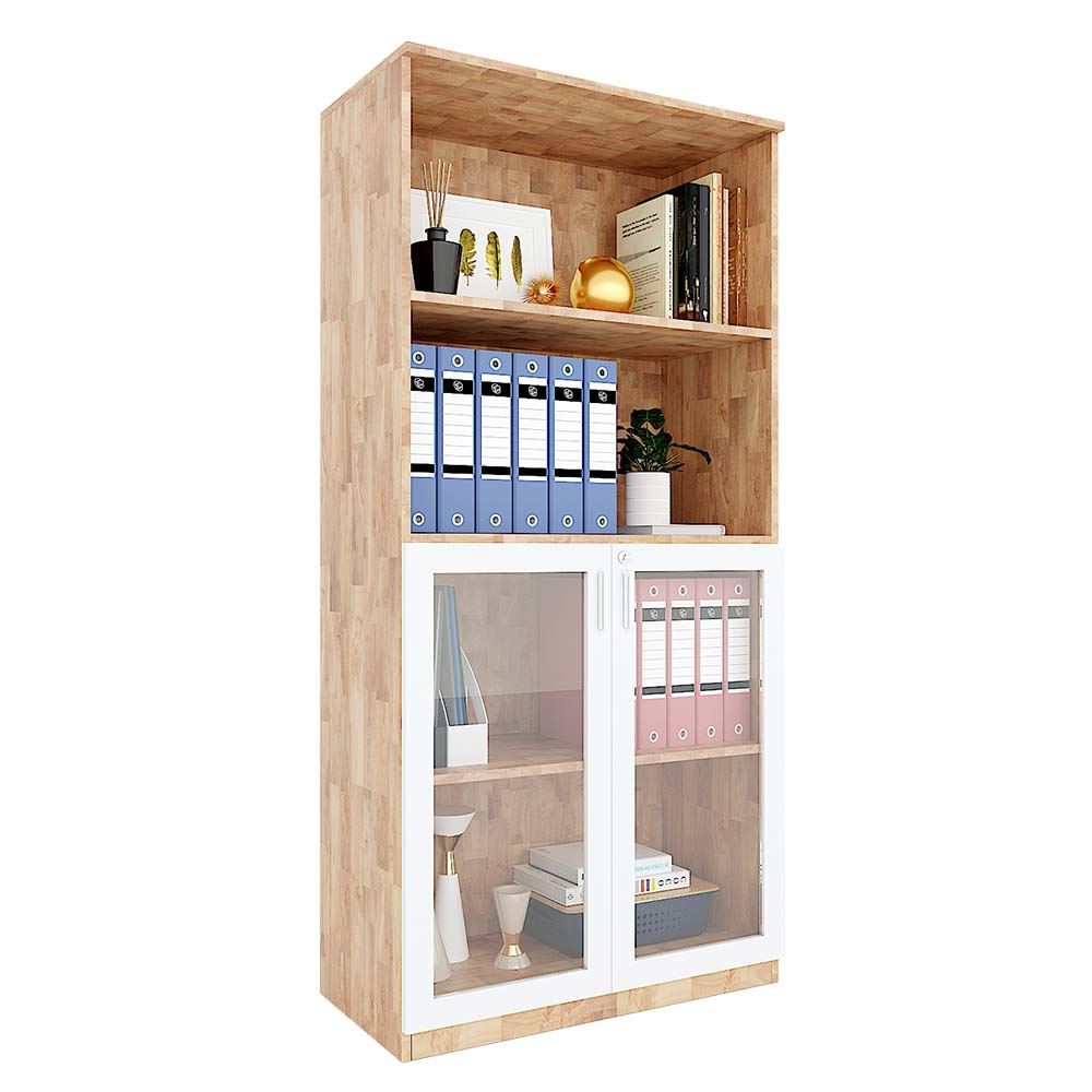Tủ hồ sơ cửa kính 4 tầng gỗ cao su THS68039 với chất liệu xung quanh tủ được làm từ gỗ cao su AA tiêu chuẩn xuất khẩu, đã qua xử lý chống cong vênh, mối mọt tiên tiến. Cửa tủ kính có khóa giúp bạn bảo quản giấy tờ tốt hơn bởi các tác động xung quanh cũng như dễ dàng tìm kiếm, sử dụng khi cần thiết. Phần tủ cửa kính cao 80cm với 2 tầng bên trong, có khóa lưu trữ.
