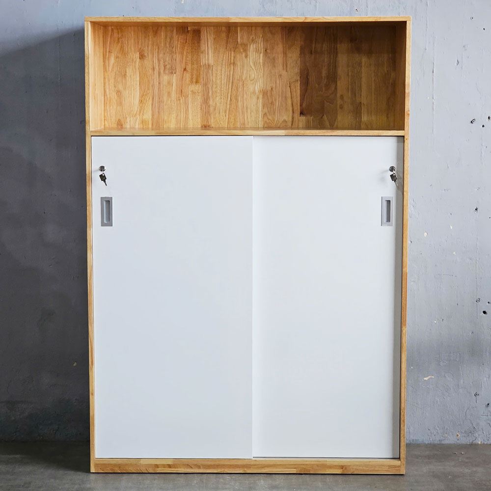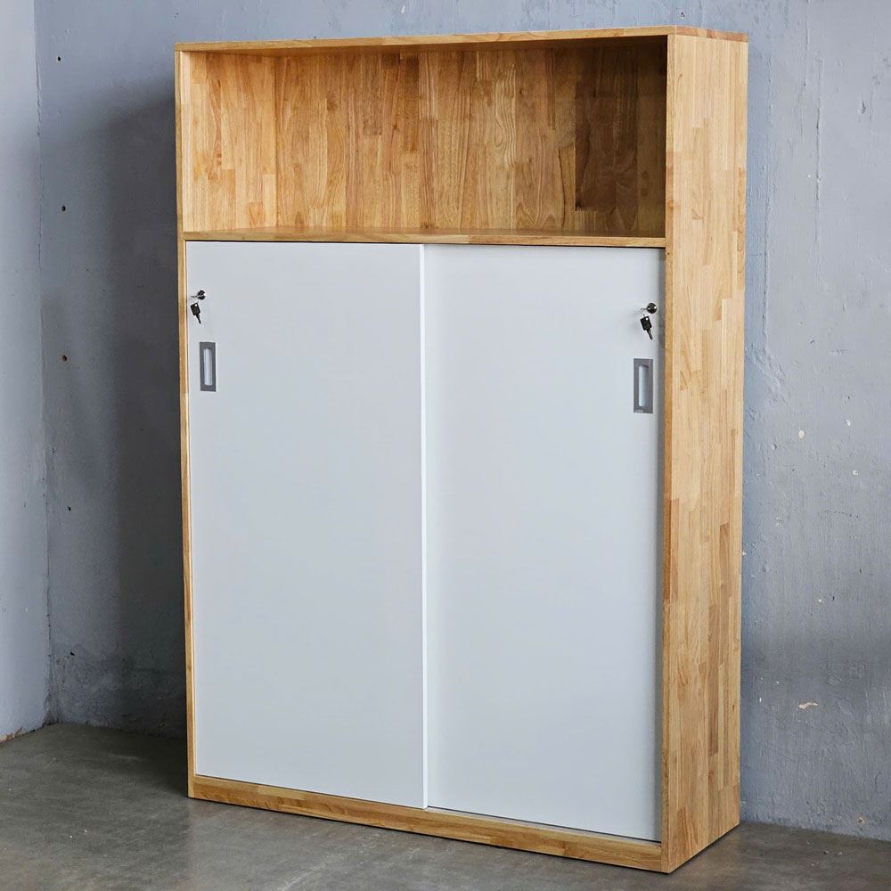 Tủ hồ sơ cửa trượt 120x40x172cm gỗ cao su THS68083