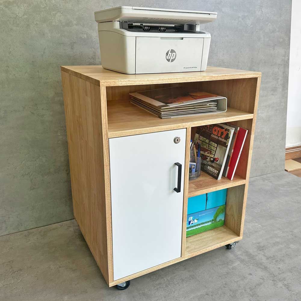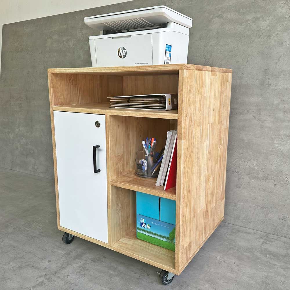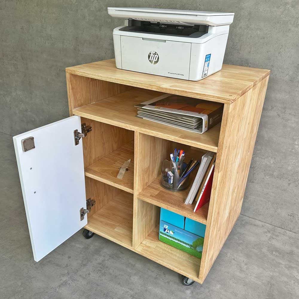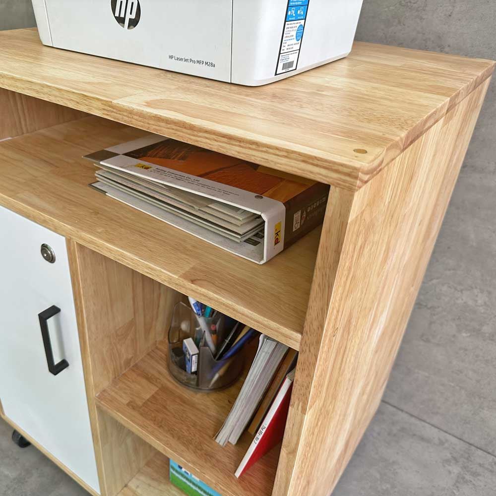 Tủ hồ sơ di động gỗ tự nhiên TCN68038 được thiết kế phù hợp để máy in với các ngăn tủ để giấy A4, A5,...và 1 ngăn có cửa mở tiện lợi. Với chất liệu chính được sử dụng là gỗ cao su AA chuẩn xuất khẩu, đã được xử lý chống cong vênh, bề mặt được sơn phủ PU chống thấm nước rất dễ làu chùi dọn dẹp, có màu sắc tự nhiên đẹp mắt.