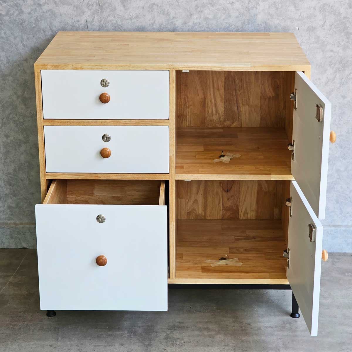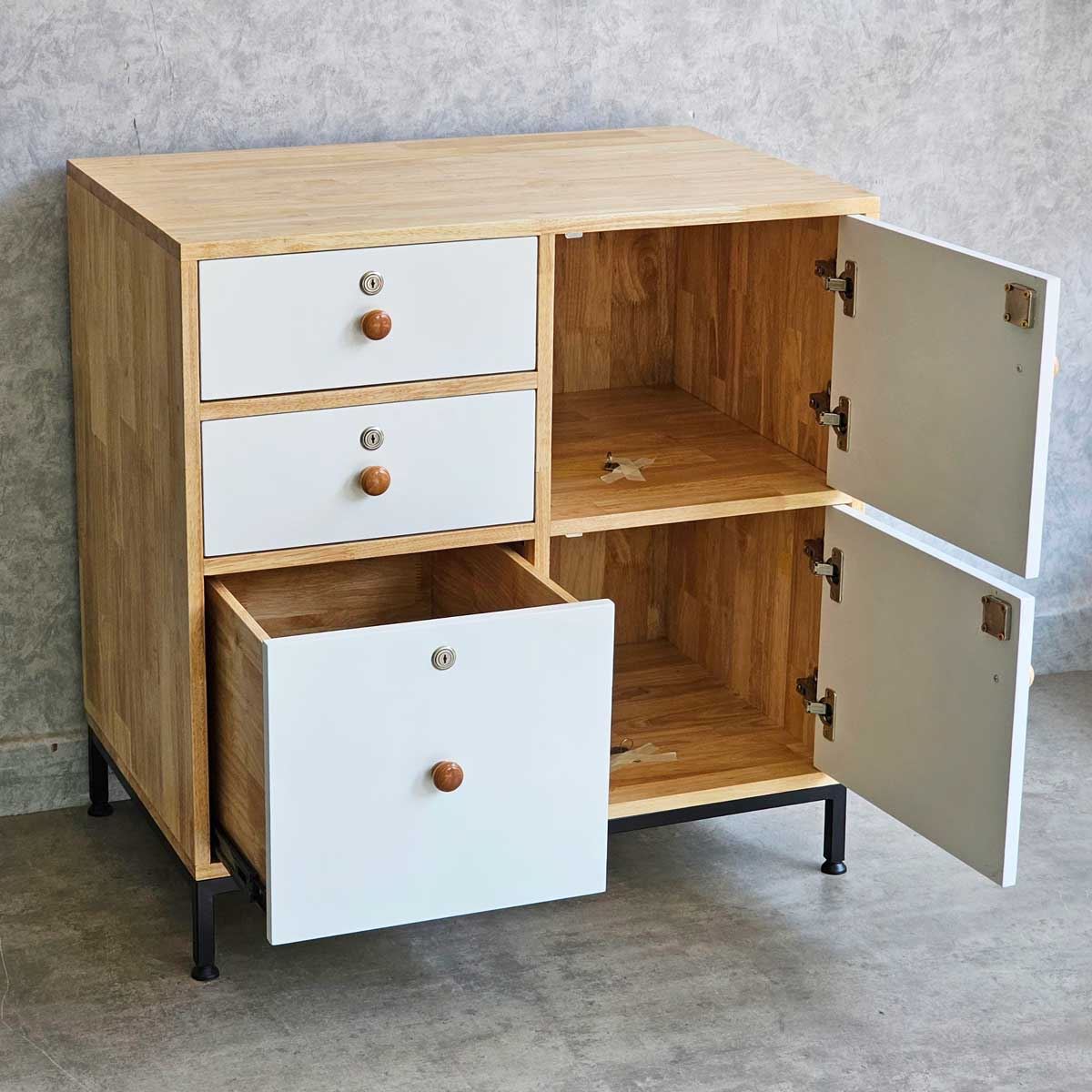 Điểm nổi bật của tủ hồ sơ có khóa là hệ thống bản lề âm hiện đại, giúp đóng mở tủ êm ái, không gây tiếng ồn khó chịu. Bạn có thể thoải mái sử dụng tủ mà không ảnh hưởng đến sự tập trung của bản thân hay đồng nghiệp xung quanh. Tủ được thiết kế với kiểu dáng đơn giản, gọn gàng nhưng không kém phần sang trọng, phù hợp với mọi không gian nội thất. Với chất liệu được làm bằng gỗ cao su AA, chuẩn xuất khẩu, đã qua xử lý chống thấm giúp đảm bảo độ bền bỉ theo thời gian.