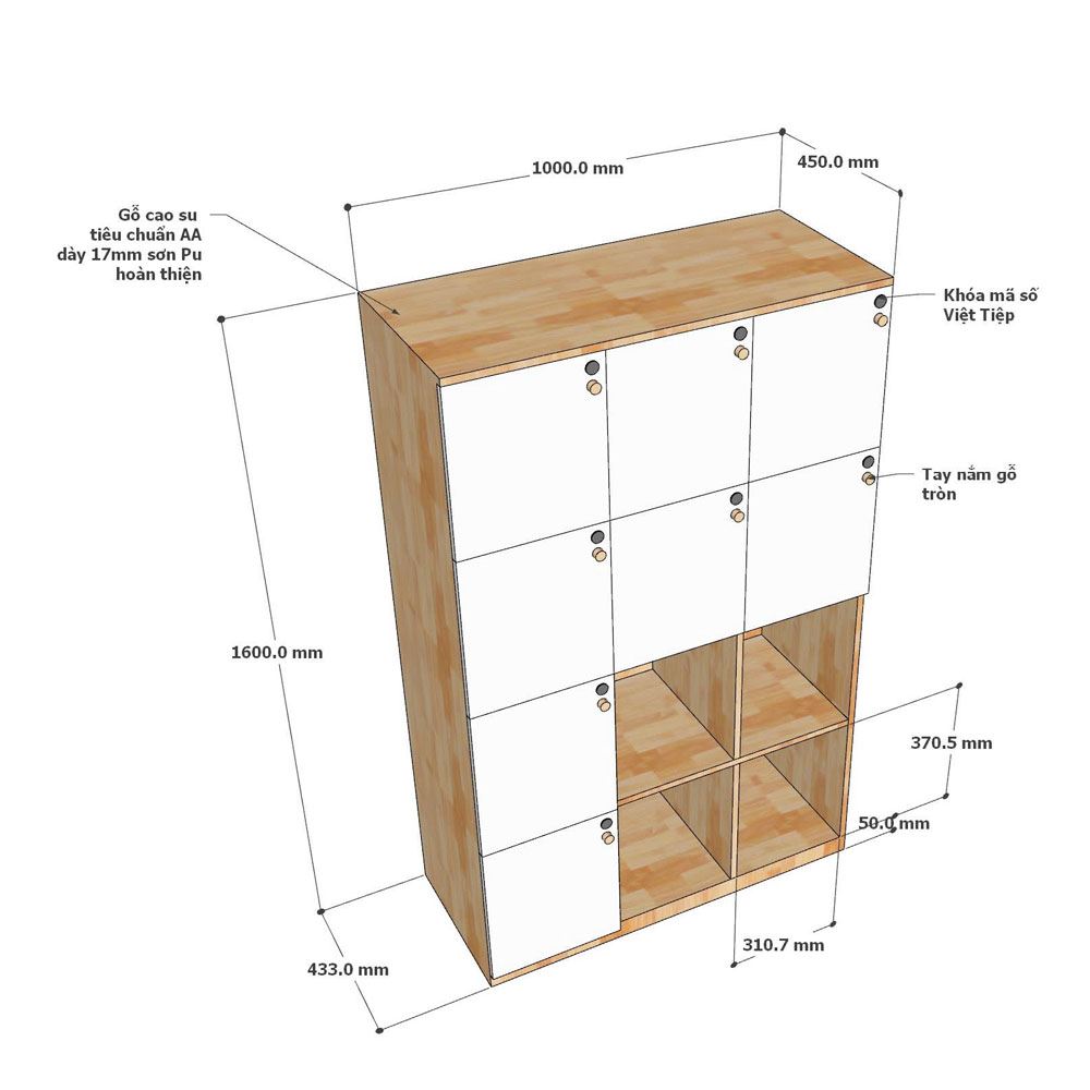 Tủ Locker 12 ngăn khóa số 100x45x160cm gỗ cao su THSL008