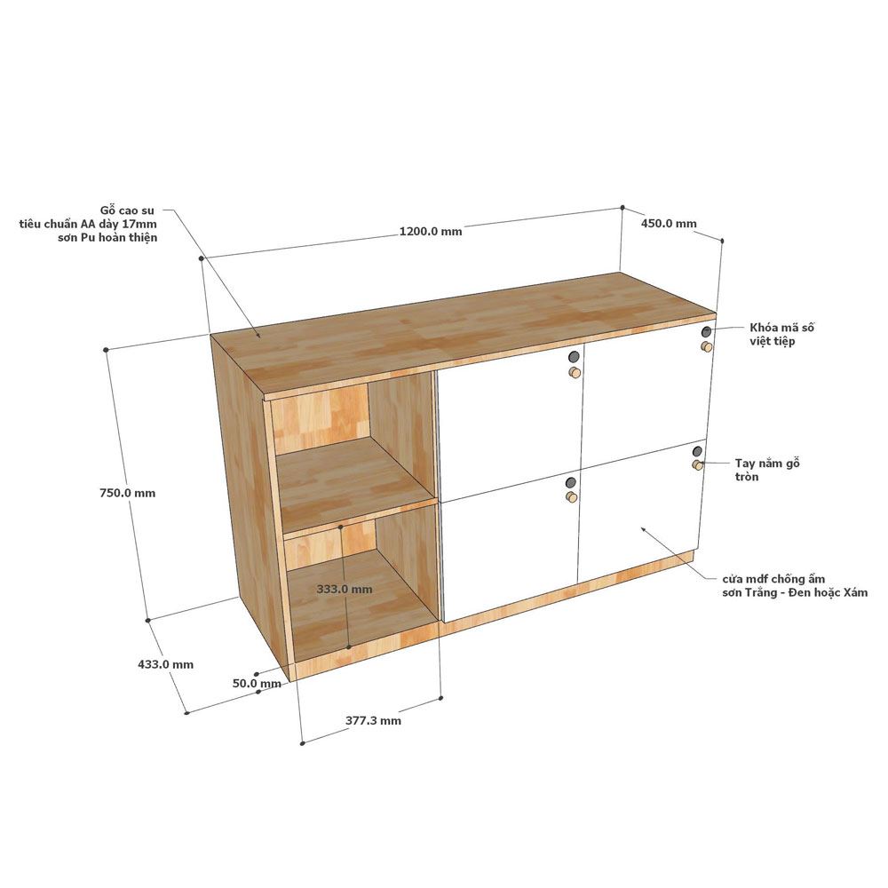 • Màu sắc: Gỗ có 4 màu tùy chọn - Cửa tủ sơn màu trắng/xám/đen