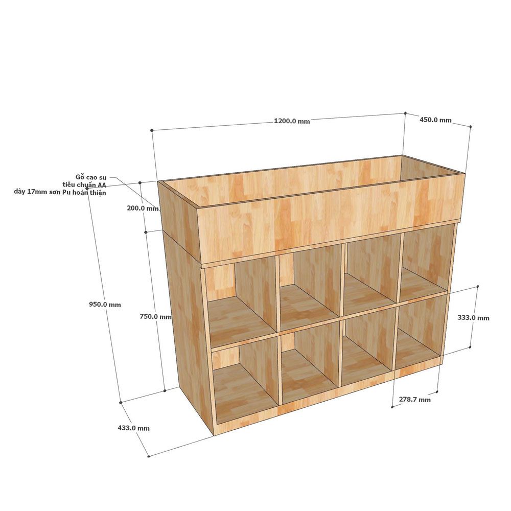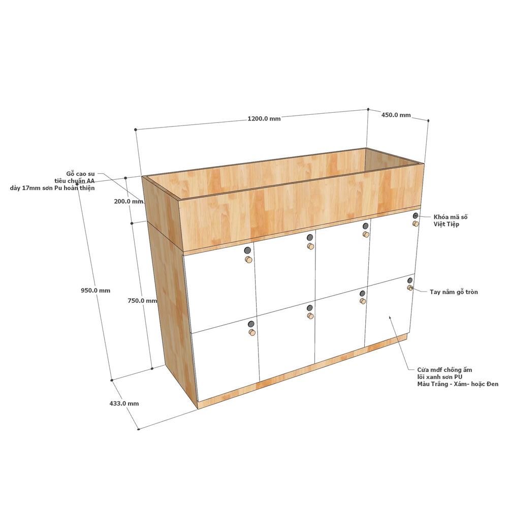 Tủ Locker 8 ngăn khóa số 120x45x95cm gỗ cao su THSL004