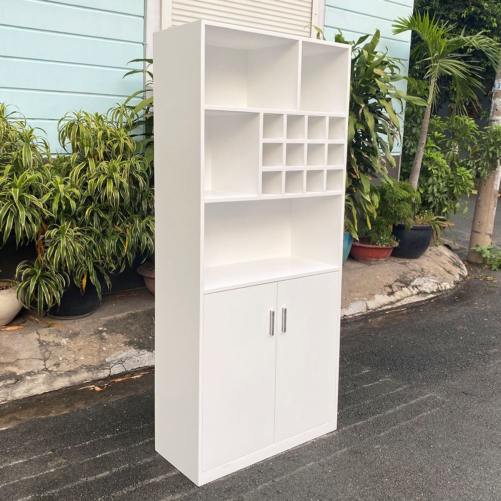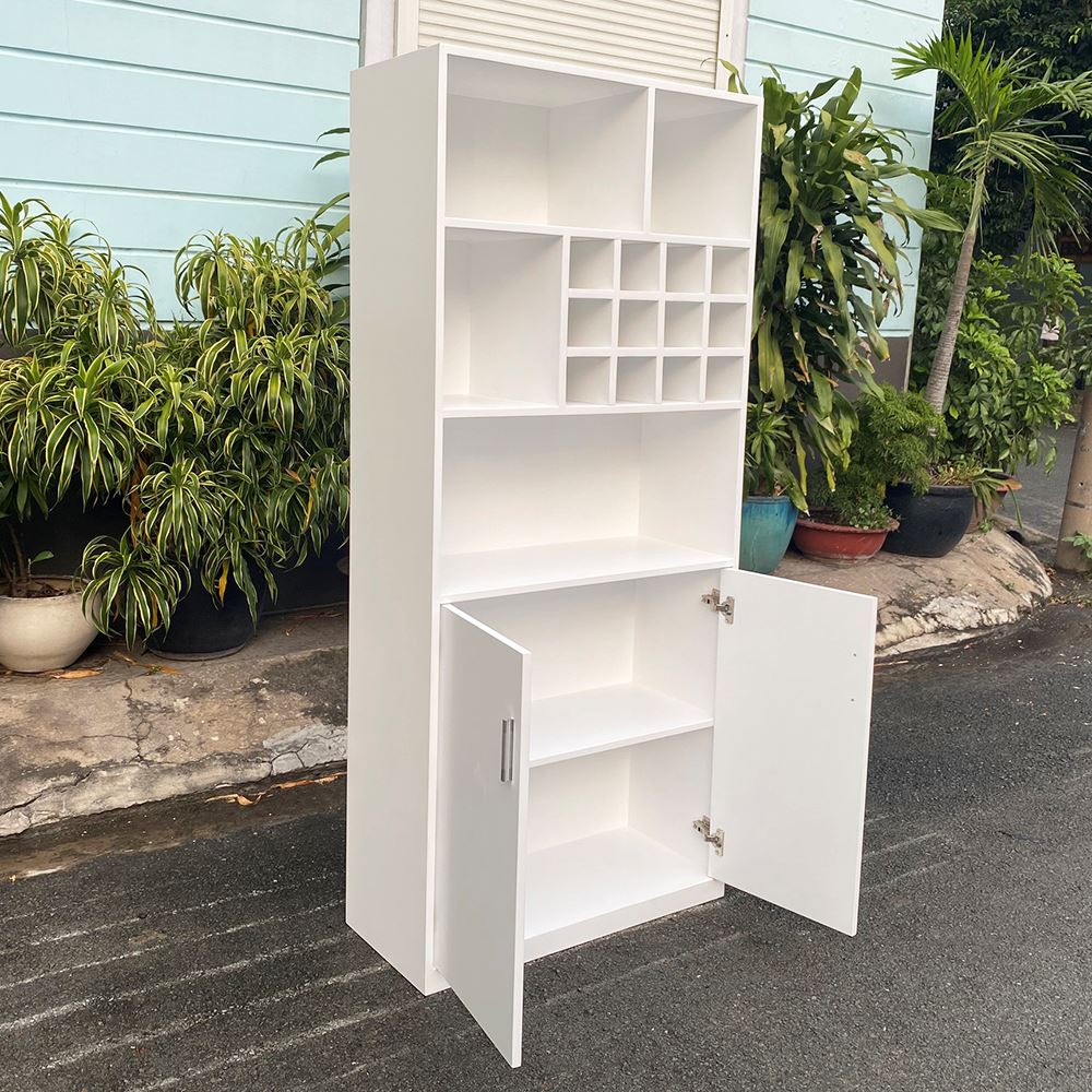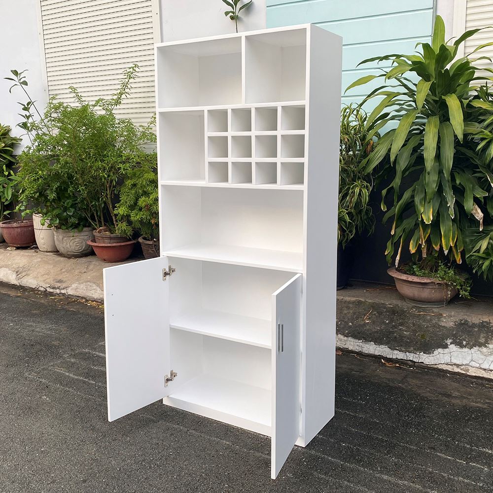 Tủ phòng ăn có hộc rượu gỗ cao su TPA00 sử dụng chất liệu chính là gỗ cao su tiêu chuẩn AA được xử lý và hoàn thiện chống thấm nước, chống cong vênh đảm bảo độ bền cao, gỗ sơn PU 5 màu sắc khác nhau tuỳ vào nhu cầu mỗi người. Thiết kế thông minh với 2 phần hệ mở và cửa tủ giúp bạn lưu trữ hay trưng bày các món đồ của mình một cách dễ dàng hơn, kiểu dáng hiện đại phù hợp với không gian phòng ăn hay nhà bếp nhà ở hay các căn hộ cư hiện nay.