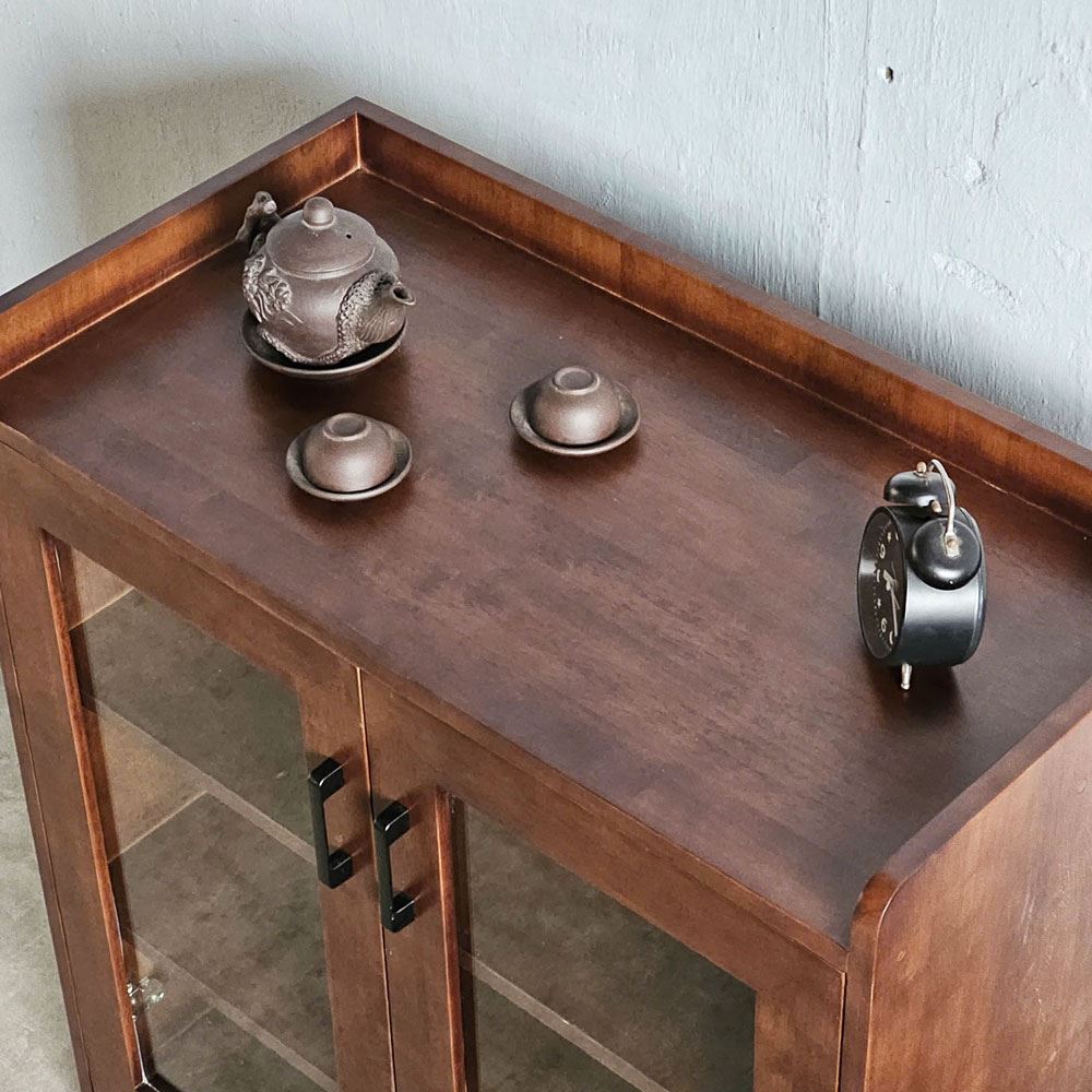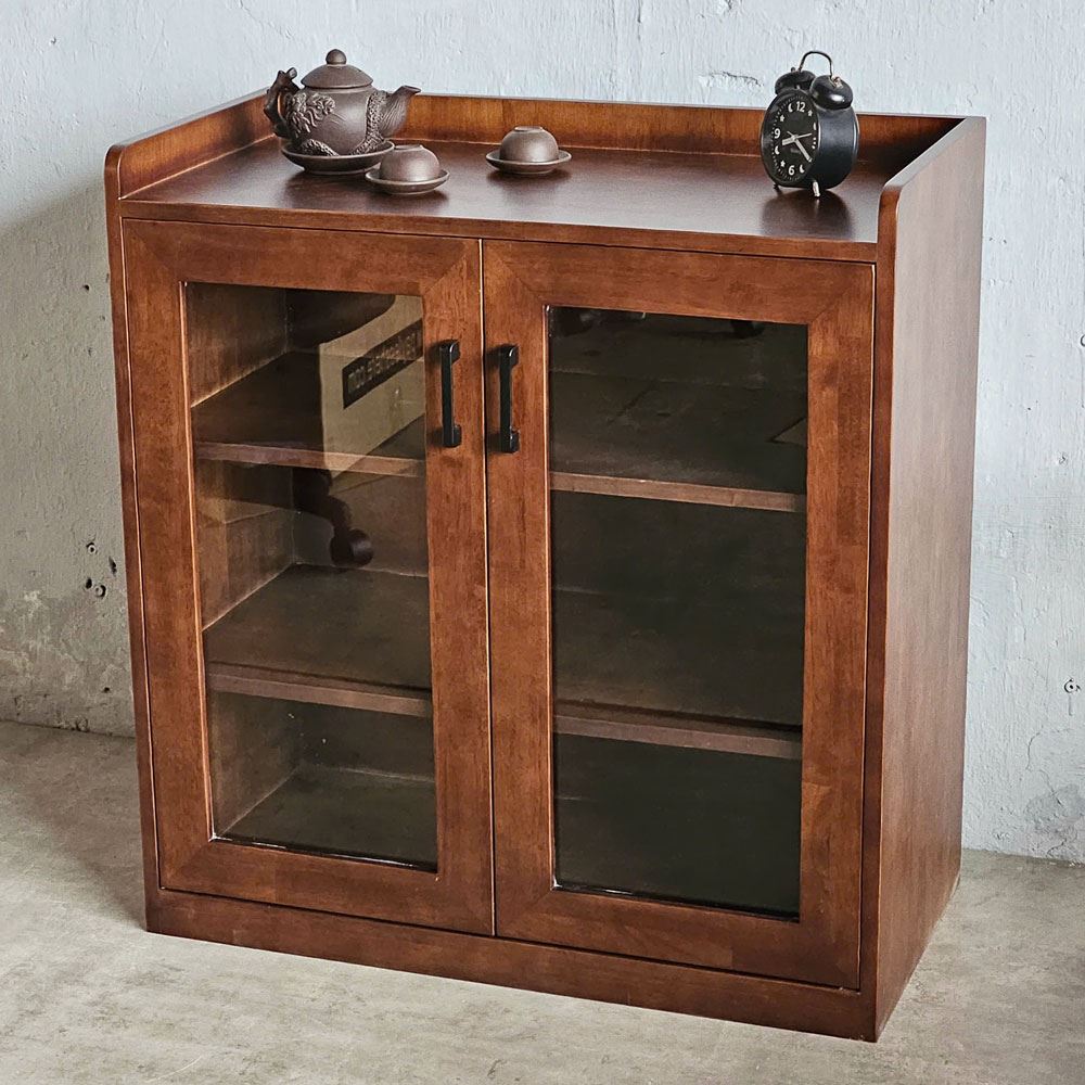 Qua lớp kính trong suốt, bạn dễ dàng ngắm nhìn những bộ chén bát, ly tách được sắp xếp tinh tế bên trong