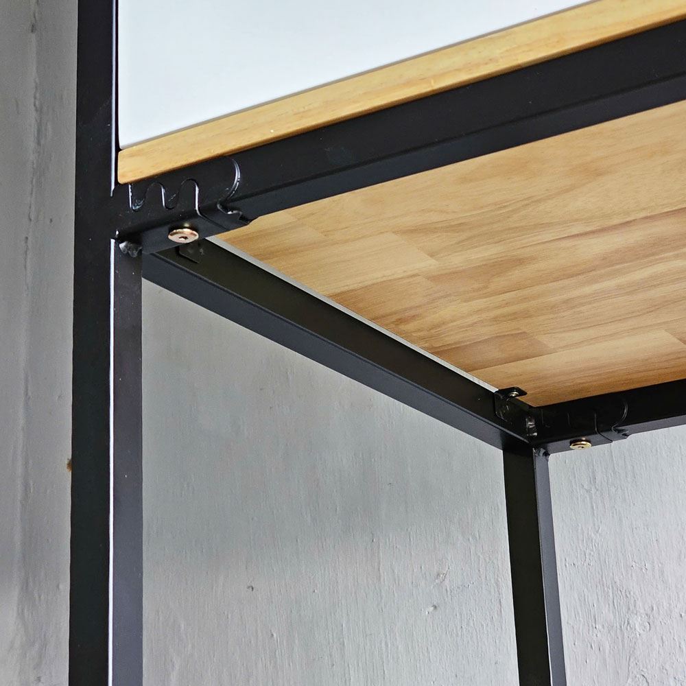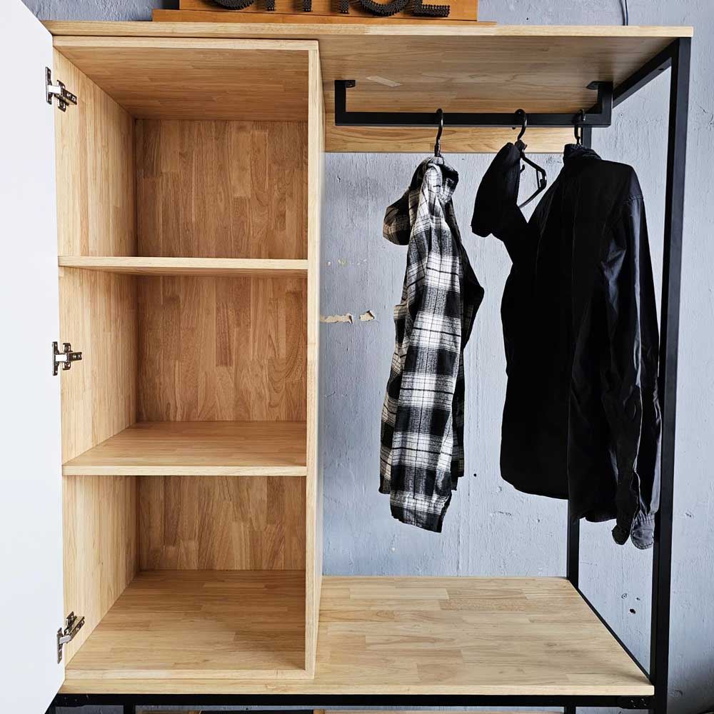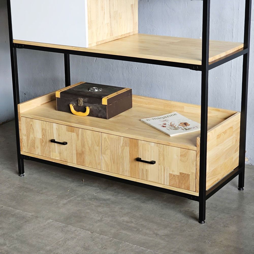 Chất liệu gỗ cao su AA chuẩn xuất khẩu, đã qua xử lý chà nhám mịn màng và chống thấm, mang đến vẻ đẹp ấm áp, gần gũi và sang trọng. Sự kết hợp giữa hai chất liệu tưởng chừng như đối lập này lại tạo nên một tổng thể hài hòa, cân đối, vừa mạnh mẽ, vừa tinh tế. Khung tủ được làm từ sắt hộp dày 1.2mm, sơn tĩnh điện chắc chắn, tạo nên bộ khung vững chãi, bền bỉ, chống lại sự bào mòn của thời gian.