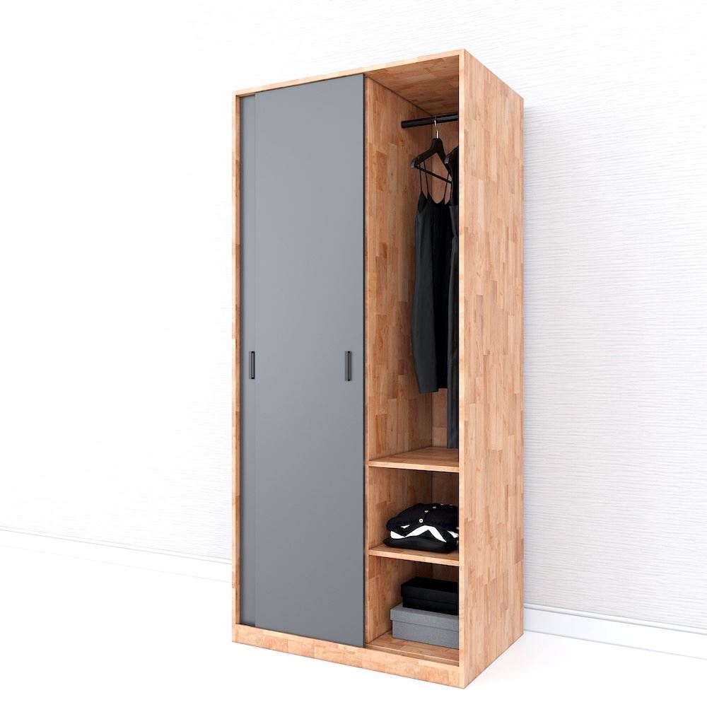 Tủ quần áo 2 cánh cửa lùa gỗ cao su