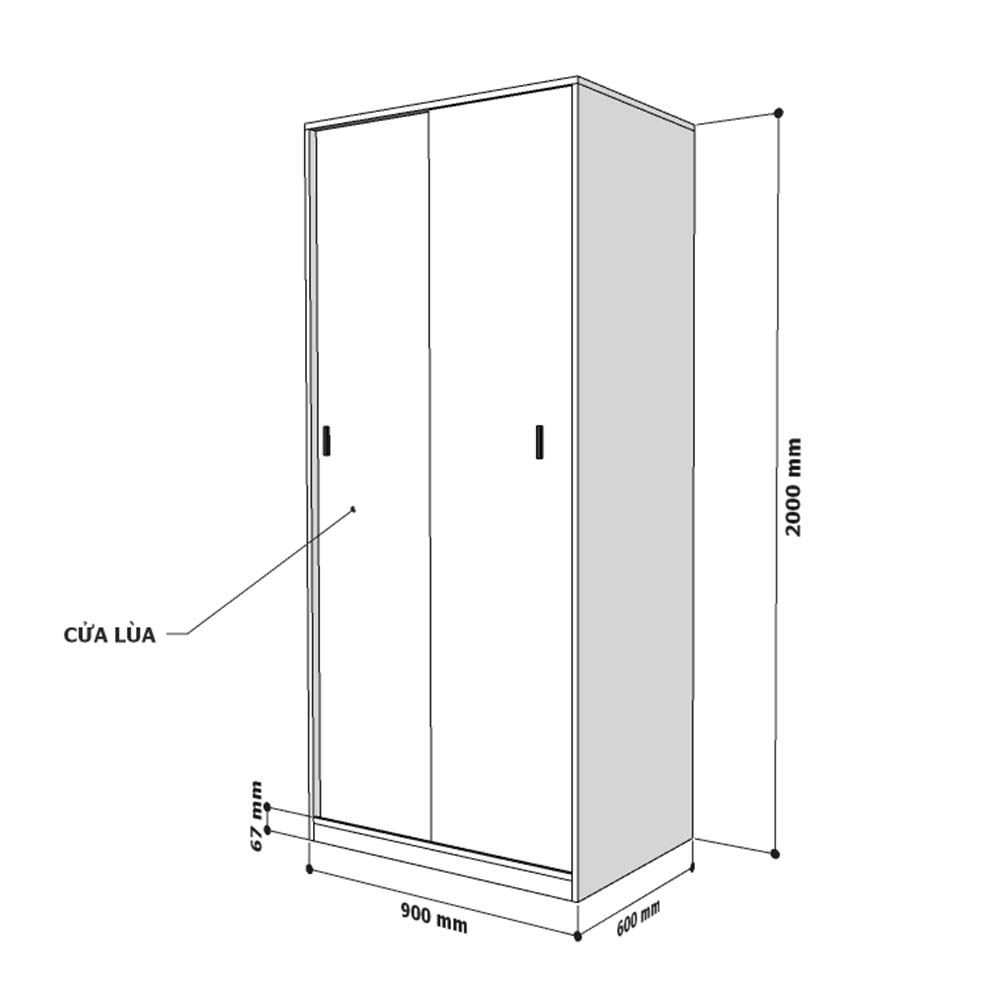 Kích thước tủ quần áo 2 cánh cửa lùa TQA68035