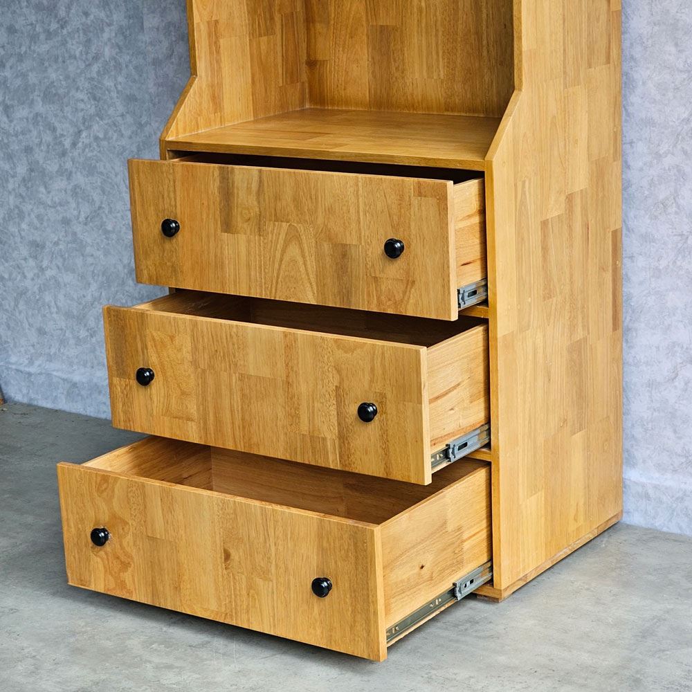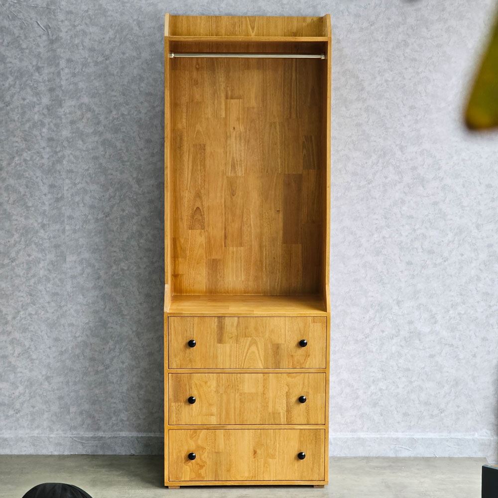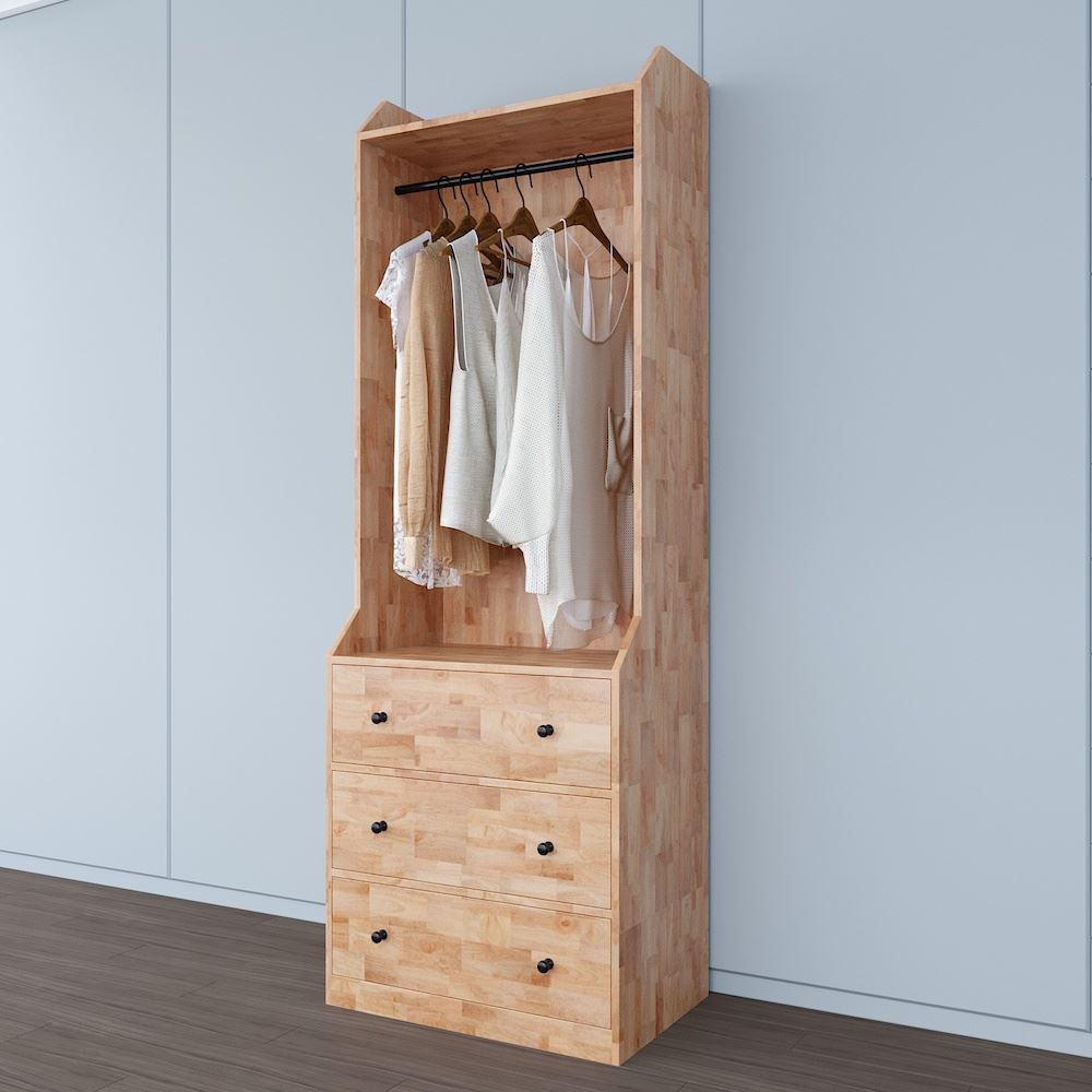 Tủ quần áo hiện đại có ngăn kéo TQA68030 với chất liệu gỗ cao su tiêu chuẩn AA ưu việt dày 17mm sơn Pu hoàn thiện vân màu đẹp mắt và chống thấm nước giúp bạn yên tâm khi vệ sinh để giữ tủ luôn sạch sẽ, gọn gàng. Kích thước 70x45cm nhỏ gọn thích hợp với không gian phòng ngủ vửa và nhỏ hoặc bạn có thể kết hợp các kệ quần áo đơn lẻ của HomeOffice thành module kệ quần áo một cách dễ dàng và tiện lợi khi cần di dời.