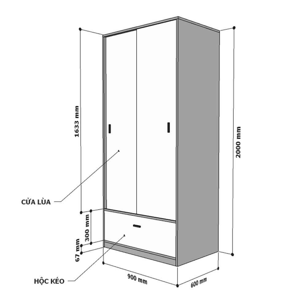 Tủ quần áo cửa lùa có hộc kéo TQA68036 với chất liệu chính là gỗ cao su tự nhiên tiêu chuẩn AA dày 17mm đã qua xử lý chống thấm nước và sơn PU hoàn thiện vân màu đẹp mắt. Kích thước 90x60x200 (DàixRộngxCao) giúp bạn dễ dàng đặt trong những căn phòng ngủ có diện tích nhỏ hẹp hay bạn có thể ghép tủ các tủ đơn thành module tủ quần áo rất tiện lợi khi cần di dời. Các móc treo đồ, ngăn tầng được phân bổ một cách phù hợp nhất, giúp bạn vừa có thể treo quần áo vừa có thể đựng các vật dụng cần thiết khác như chăn, mềm, gối và đồ cá nhân.