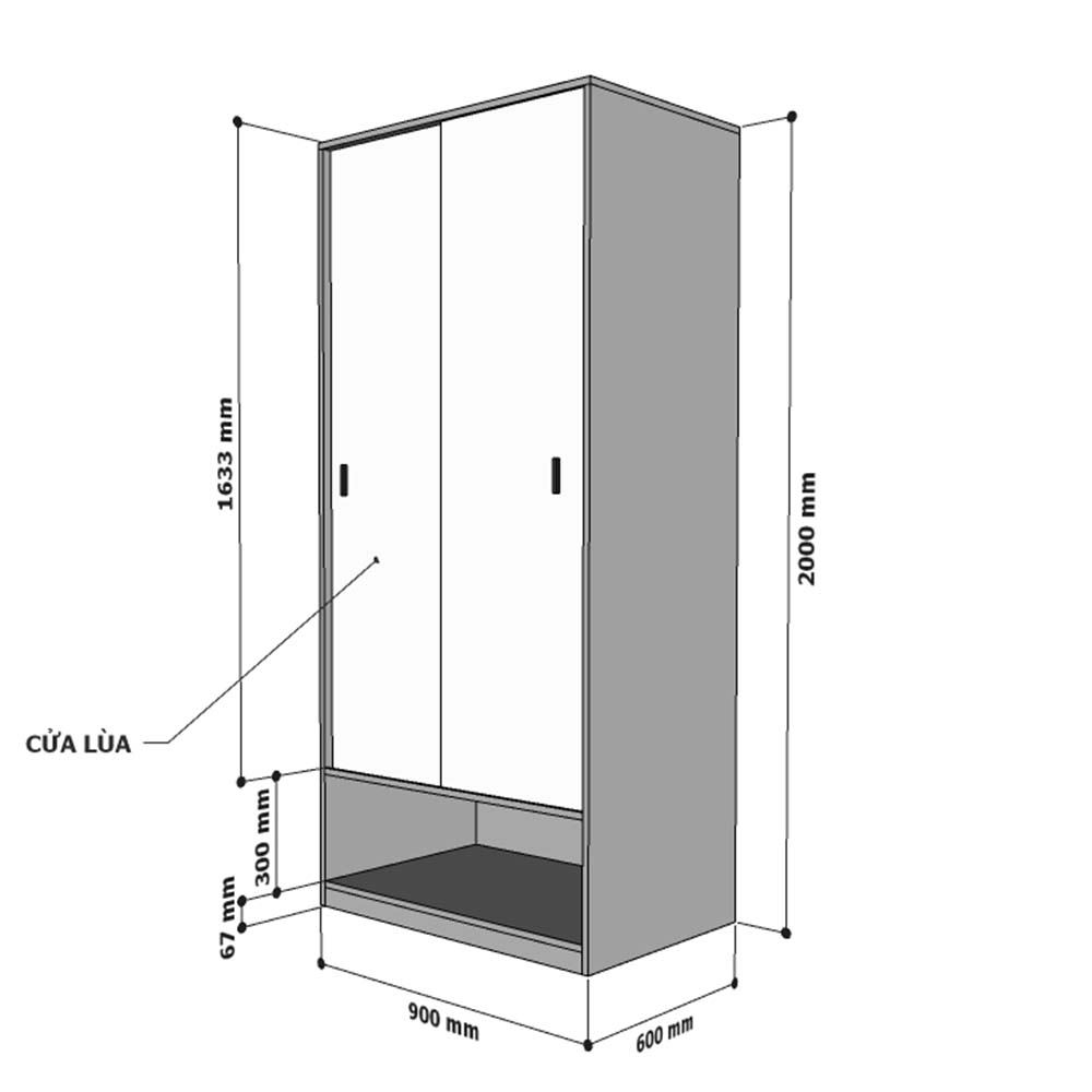Kích thước tủ quần áo cửa lùa gỗ cao su TQA68037