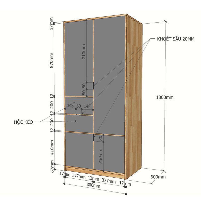 Tủ được thiết kế phân chia nhiều ngăn,tầng hợp lý giúp bạn thuận tiện sử dụng