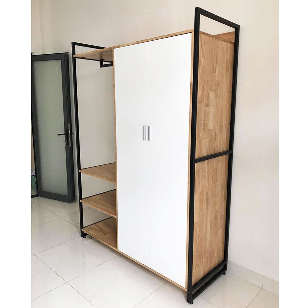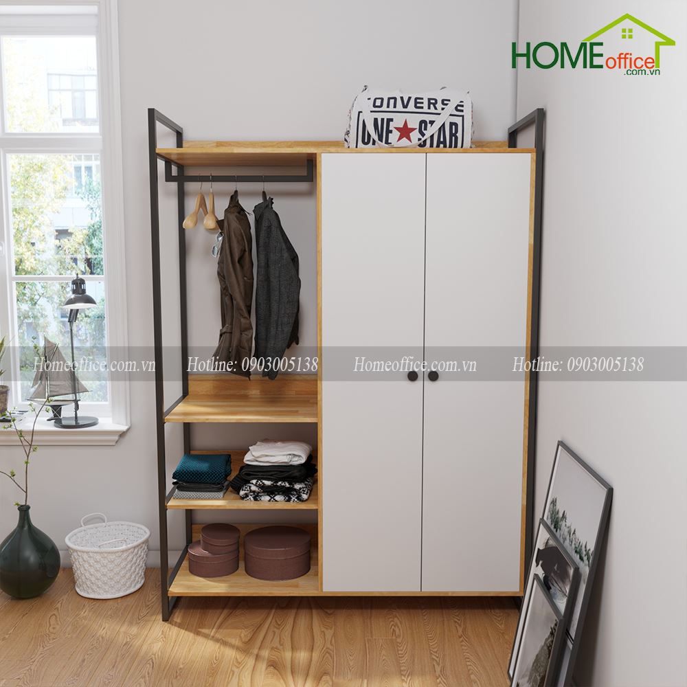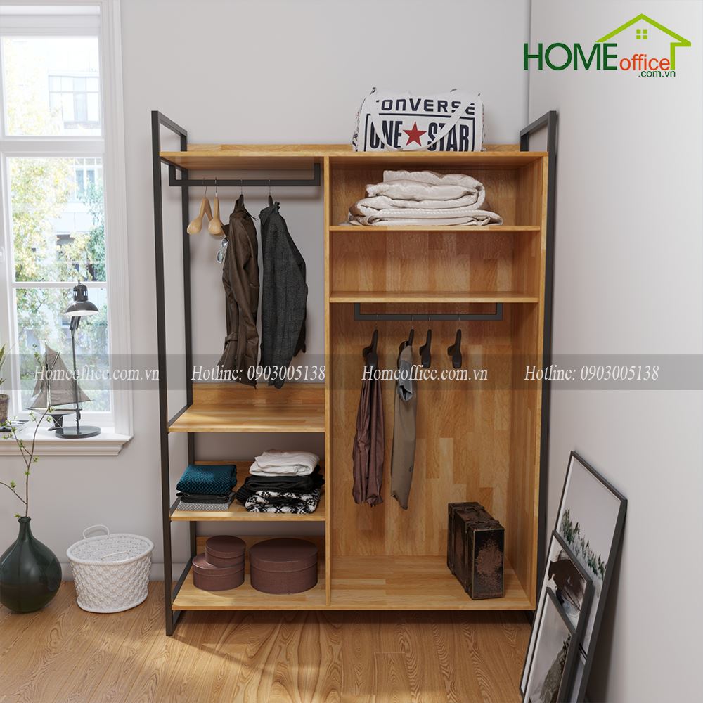 TQA68001 - Tủ quần áo kết hợp kệ treo ( 1.4m x 55cm x 2m) là sự kết hợp hài hòa giữa khung sắt hộp và gỗ cao su Với những gia đình có nhiều thành viên hoặc quá nhiều đồ thường gặp khó khăn trong việc tìm một chiếc tủ đáp ứng đủ nhu cầu của bản thân, và càng vất vả hơn khi diện tích phòng khá khiêm tốn. Để giúp bạn giải quyết những vấn đề trên HomeOffice đã cho ra dòng sản phẩm tủ quần áo kết hợp kệ vô cùng mới lạ, độc đáo, phù hợp với mọi loại không gian phòng dù lớn hay nhỏ. Và tôi mong rằng bạn có thể lựa chọn được cho bản thân một chiếc tủ ưng ý và đặt làm theo.