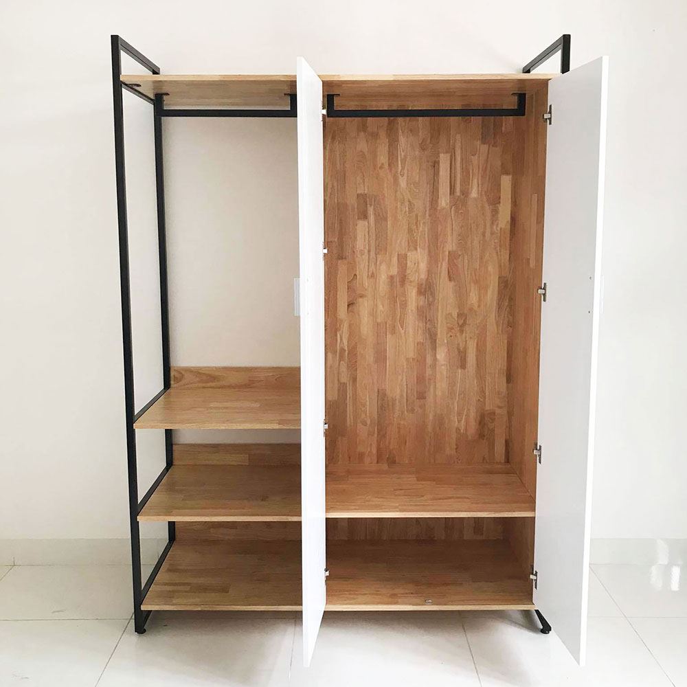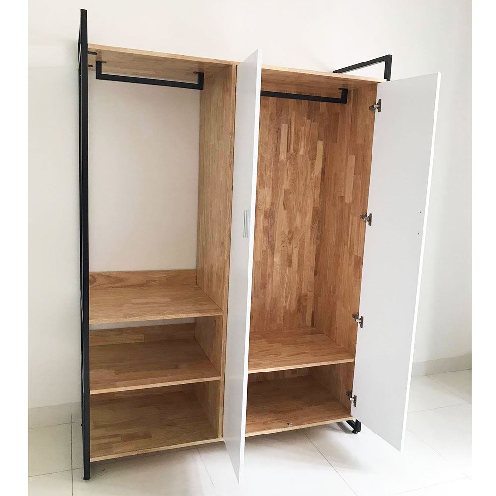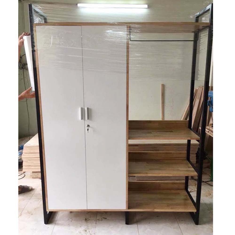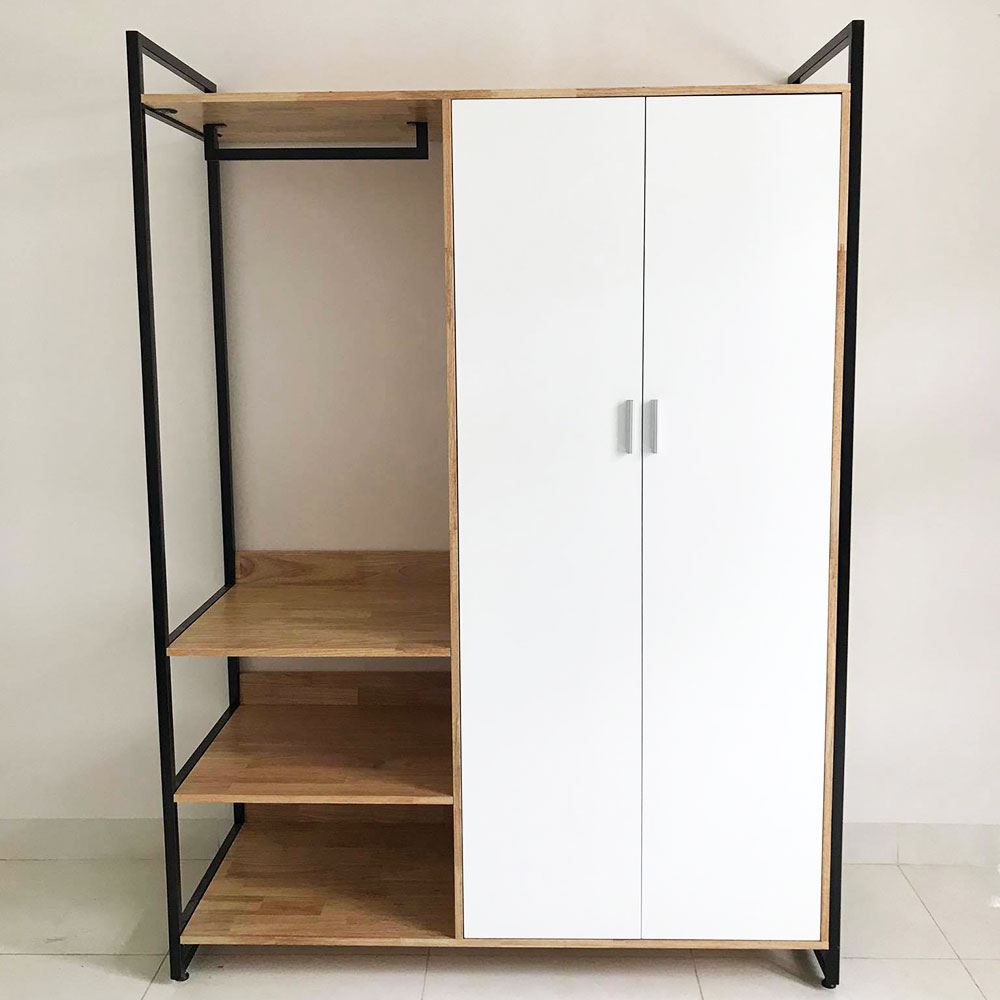 TQA68001 - Tủ quần áo kết hợp kệ treo ( 1.4m x 55cm x 2m) là sự kết hợp hài hòa giữa khung sắt hộp và gỗ cao su Với những gia đình có nhiều thành viên hoặc quá nhiều đồ thường gặp khó khăn trong việc tìm một chiếc tủ đáp ứng đủ nhu cầu của bản thân, và càng vất vả hơn khi diện tích phòng khá khiêm tốn. Để giúp bạn giải quyết những vấn đề trên HomeOffice đã cho ra dòng sản phẩm tủ quần áo kết hợp kệ vô cùng mới lạ, độc đáo, phù hợp với mọi loại không gian phòng dù lớn hay nhỏ. Và tôi mong rằng bạn có thể lựa chọn được cho bản thân một chiếc tủ ưng ý và đặt làm theo.