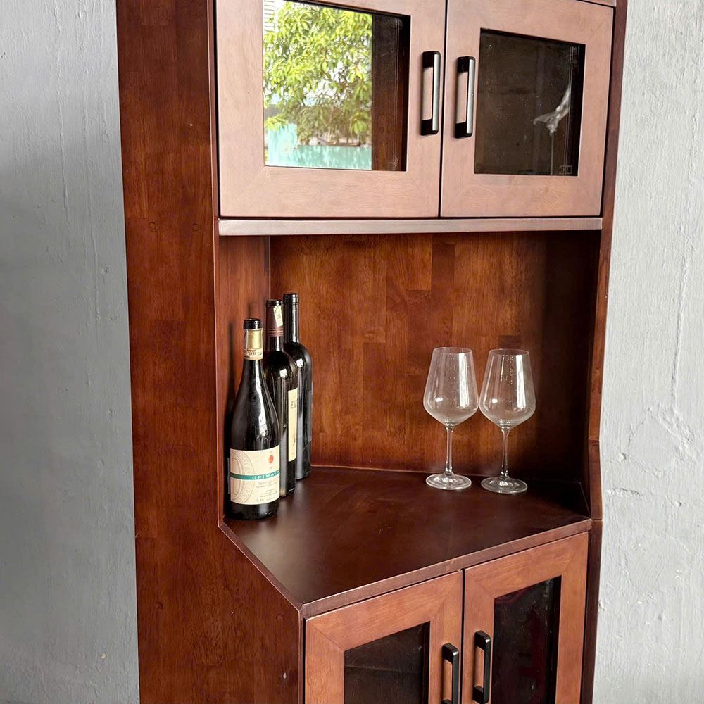 Tủ Rượu góc tường gỗ cao su 60x60x180cm - KGT68035 được thiết kế để để ở các góc tường trống trong nhà bếp, hoặc phòng khách dùng làm một chiếc tủ rượu, tủ trưng bày hay tủ lưu trữ đều rất hợp lý. Với chất liệu gỗ cao su tiêu chuẩn AA dày 17mm sơn PU hoàn thiện và được đóng cố định rất chắc chắn, kết hợp với chân sắt cao, robot hút bụi có thể dễ dàng di chuyển và lau dọn. Cửa kính kết hợp giúp dễ dàng kiểm tra và lấy đồ trong tủ.