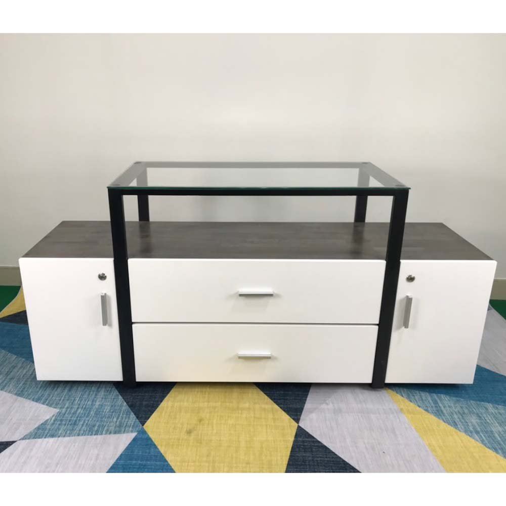 Kệ Tivi phòng khách hiện đại gỗ cao su mặt kính KTV68052 là sự kết hợp hoàn hảo giữa sắt hộp và gỗ cao su sơn Pu màu tự nhiên với hệ khung sắt hộp nhỏ sơn tĩnh điện cho vẻ đẹp vừa hiện đại vừa cổ điển, cùng 2 ngăn kéo và 2 tủ cửa mở giúp tăng tối đá khả năng để đồ. Đây là mẫu kệ Tivi được nhiều khách hàng lựa chọn bởi độ bền gần như vĩnh viễn của sắt và gỗ cao su ghép, màu sắc gỗ tự nhiên đẹp mắt. Với kích thước 150cm chiều ngang rộng rãi phù hợp với nhiều mảng tường chung cư hoặc gia đình với thiết kế đơn giản.