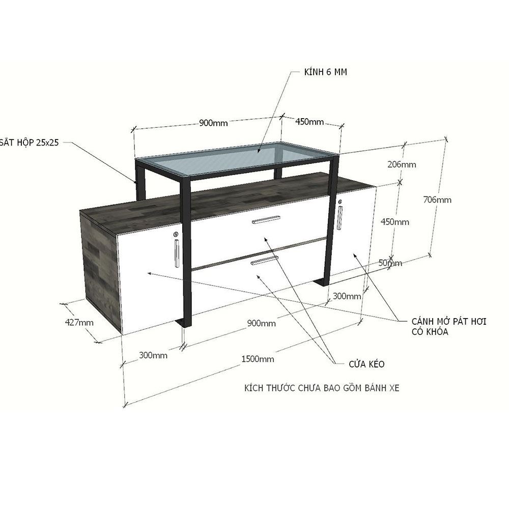Kích thước chi tiết kệ tivi KTV68052