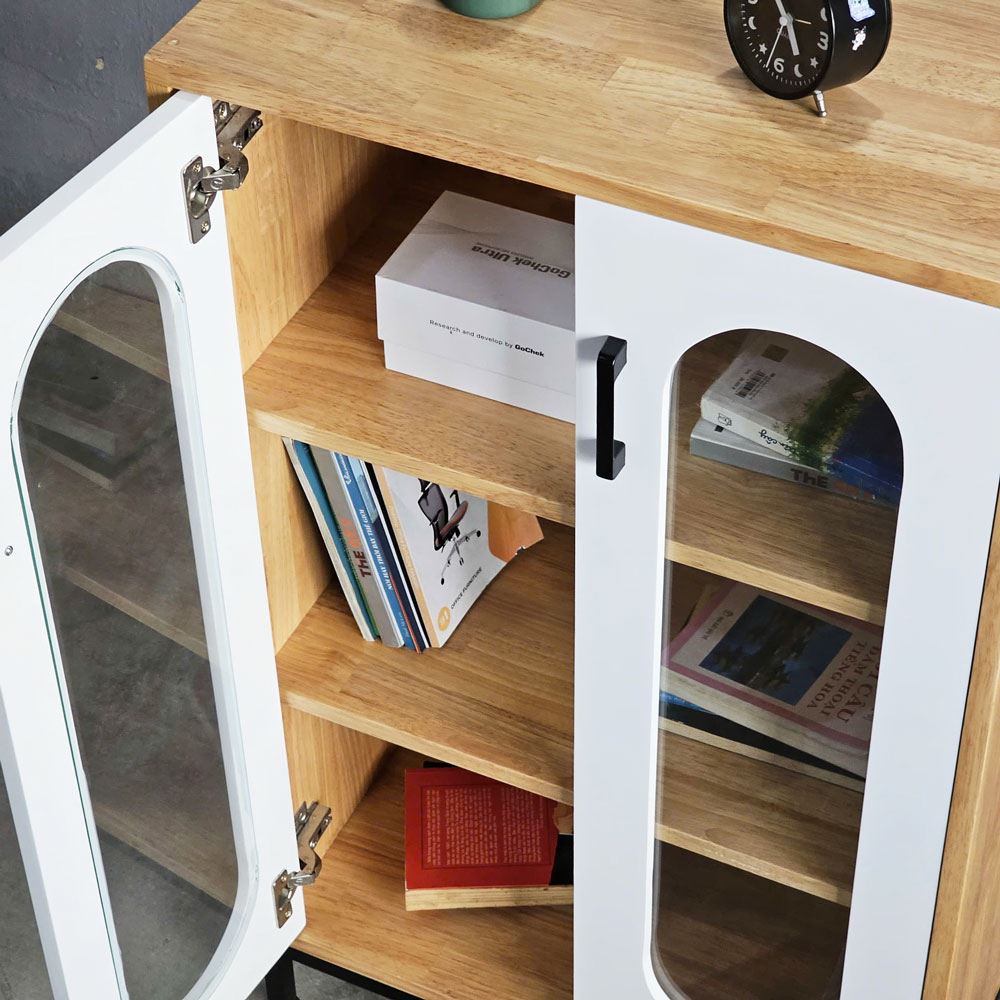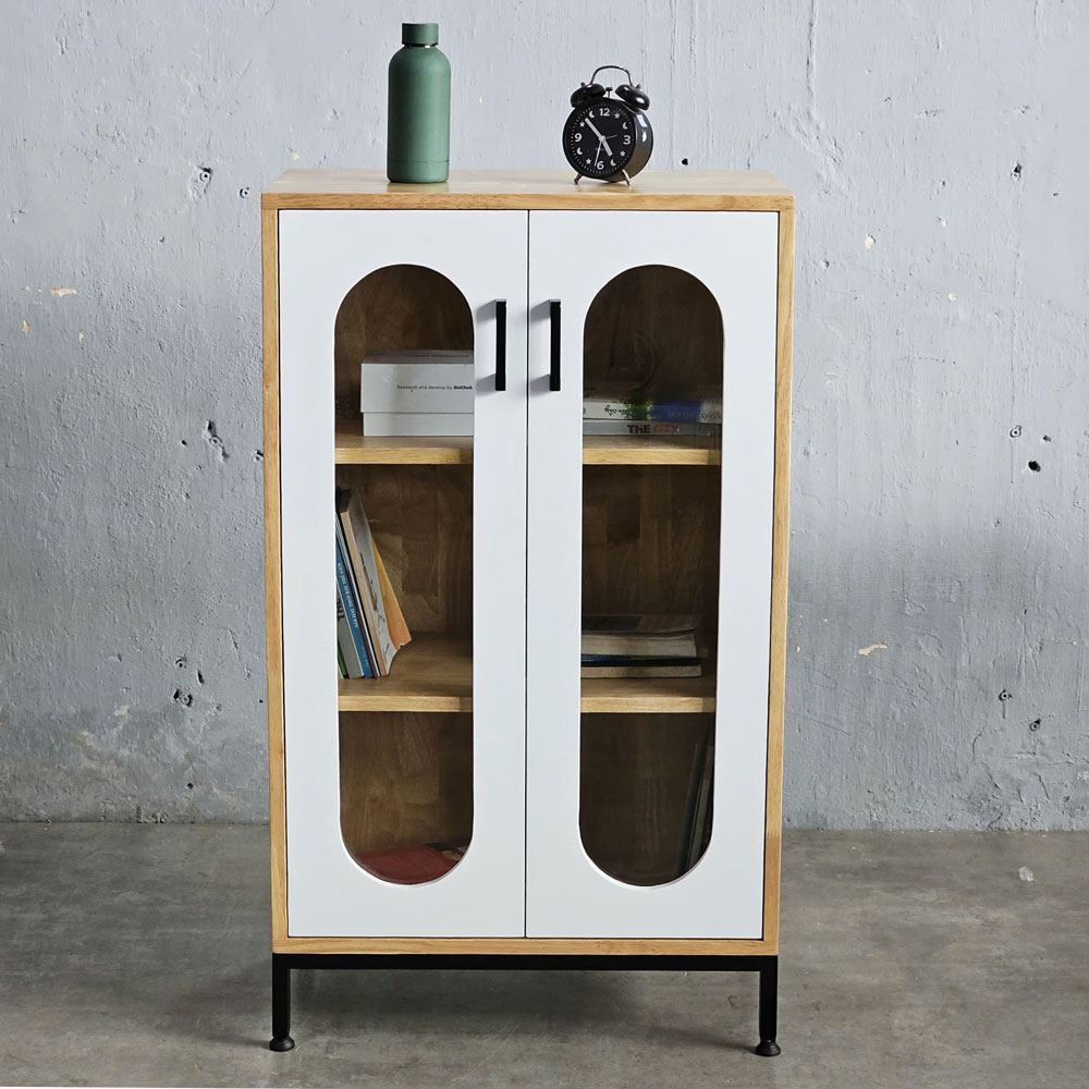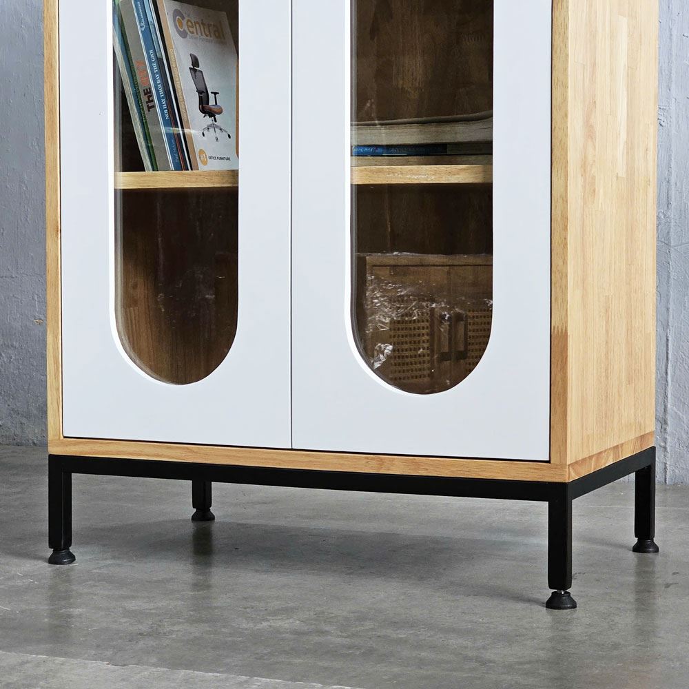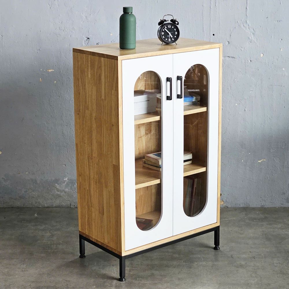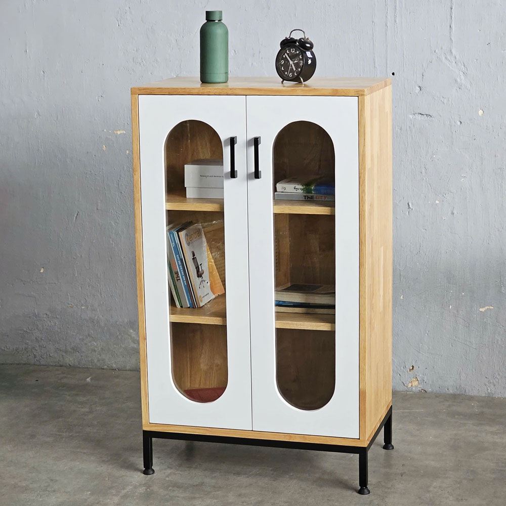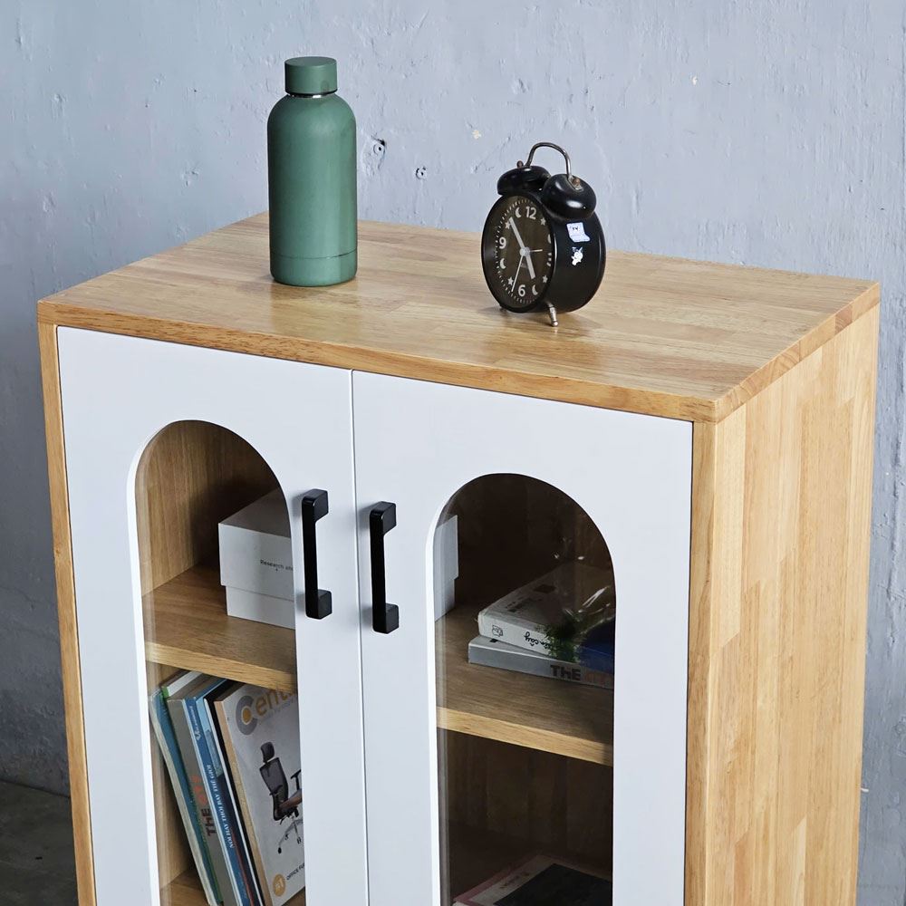 Điểm nhấn đặc biệt của tủ trang trí KTB68208 nằm ở thiết kế cánh cửa kính hình Oval. Không phải là những ô kính vuông vức, nhàm chán, mà là những đường cong mềm mại, uyển chuyển, tạo cảm giác như một khung cửa sổ nhìn vào một thế giới riêng. Viền gỗ trắng bao quanh phần kính oval không chỉ tạo điểm nhấn thị giác mà còn mang đến sự tương phản tinh tế, làm nổi bật vẻ đẹp của từng món đồ được trưng bày bên trong.
