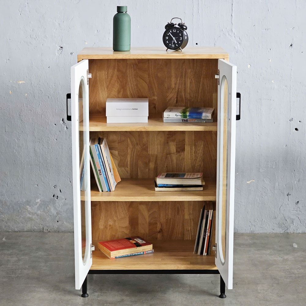 Tủ KTB68208 sở hữu hai cánh cửa kính được “khoét” hình oval duyên dáng thay vì những kiểu cửa đơn điệu và nhàm chán