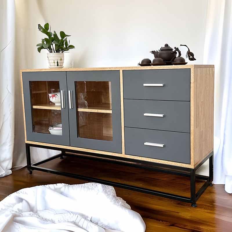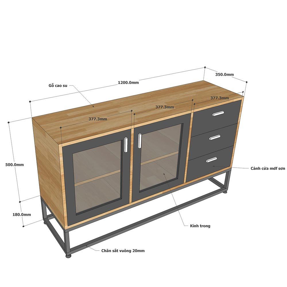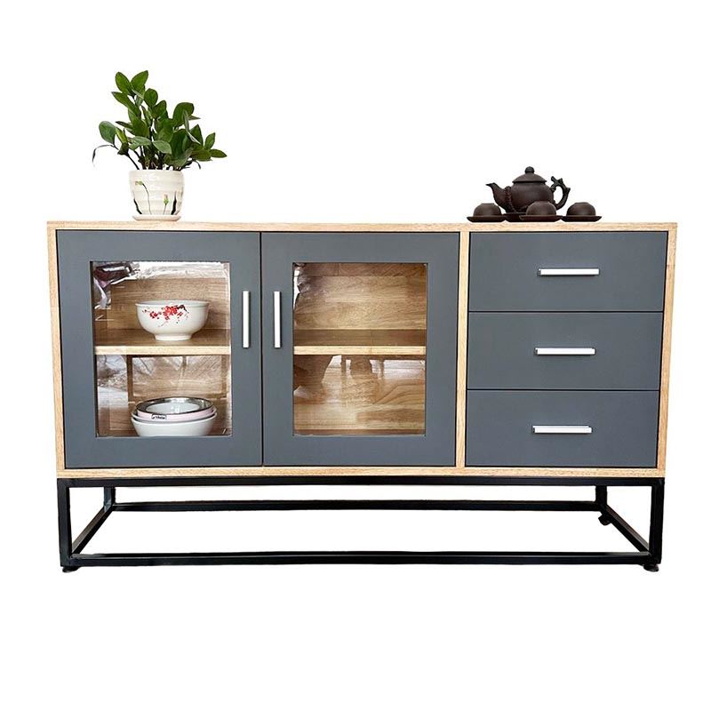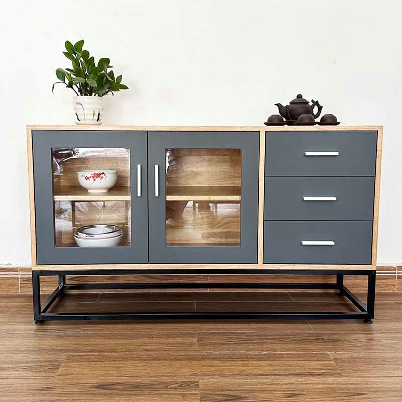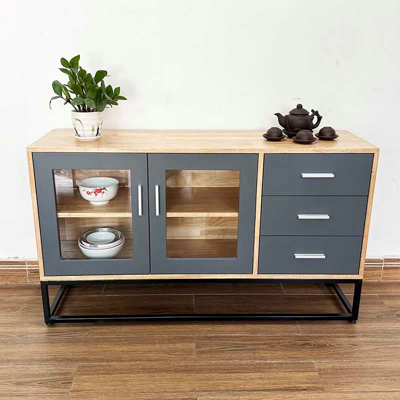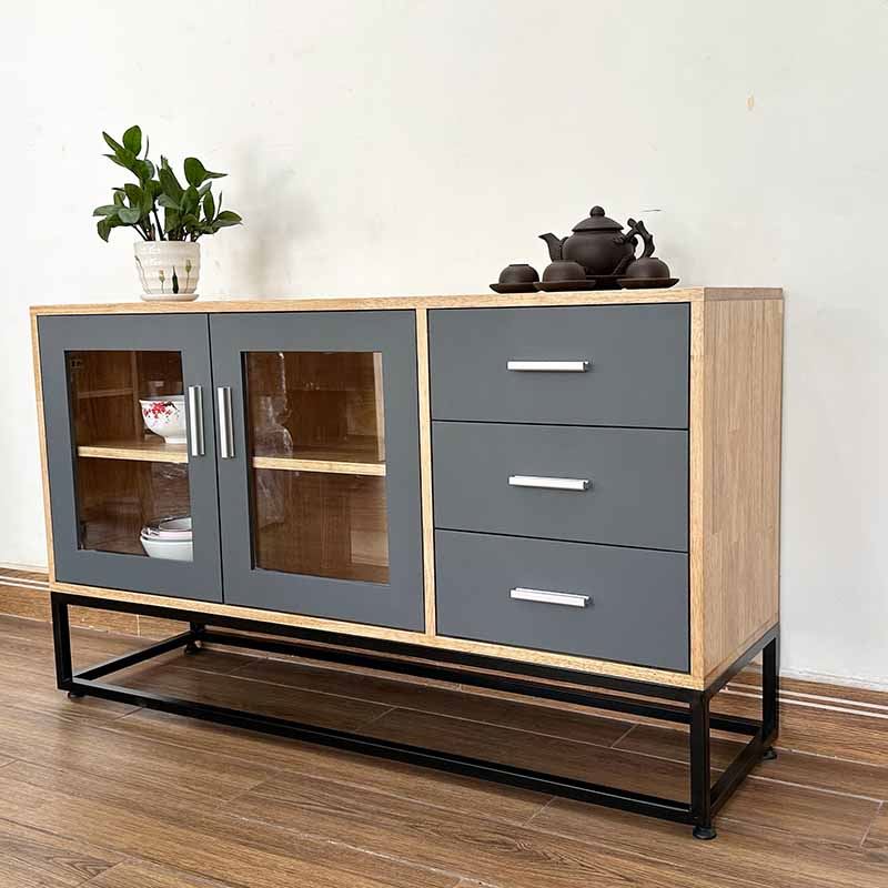 Tủ trang trí gỗ cao su chân sắt KTB68114 với chiều dài 1m2 và chiều rộng 35cm phù hợp với các không gian phòng khách vừa và nhỏ. Chất liệu chính là gỗ cao su tiêu chuẩn AA dày 17mm sơn PU hoàn thiện màu sắc đẹp kết hợp các hệ hộc kéo và ngăn mở đẹp mắt phối màu hợp lý sẽ giúp không gian nhà bạn thêm đẹp hơn. Chân sắt sơn tĩnh điện chống rỉ sét đảm bảo độ bền cao cũng như tính thẩm mỹ cho sản phẩm.