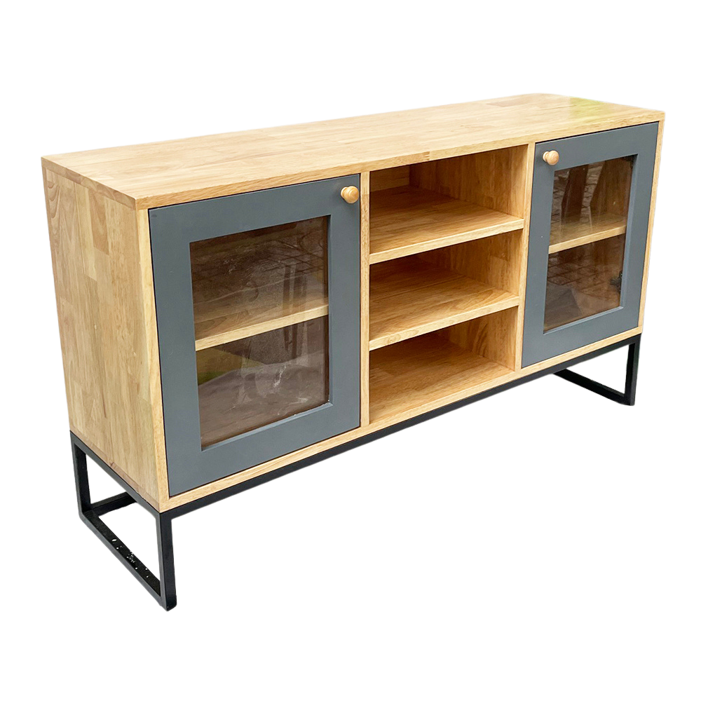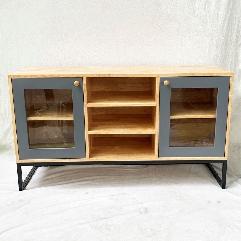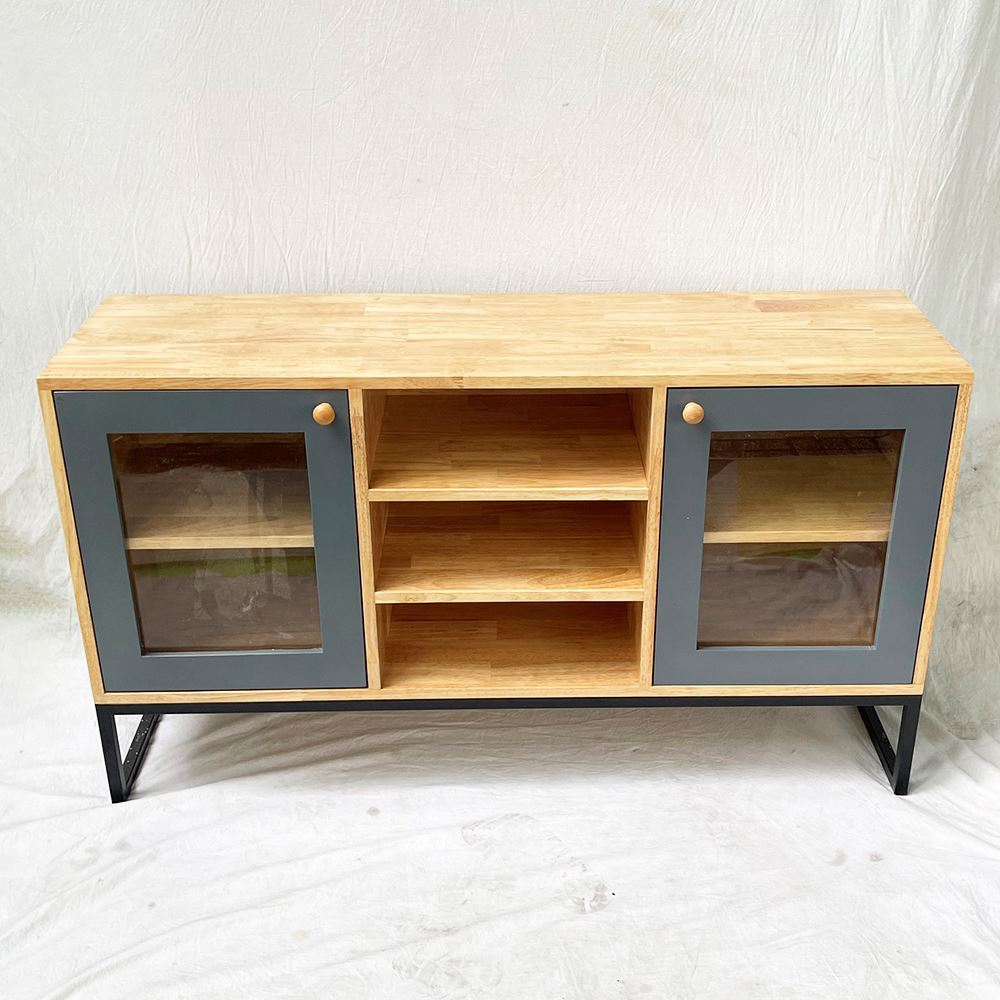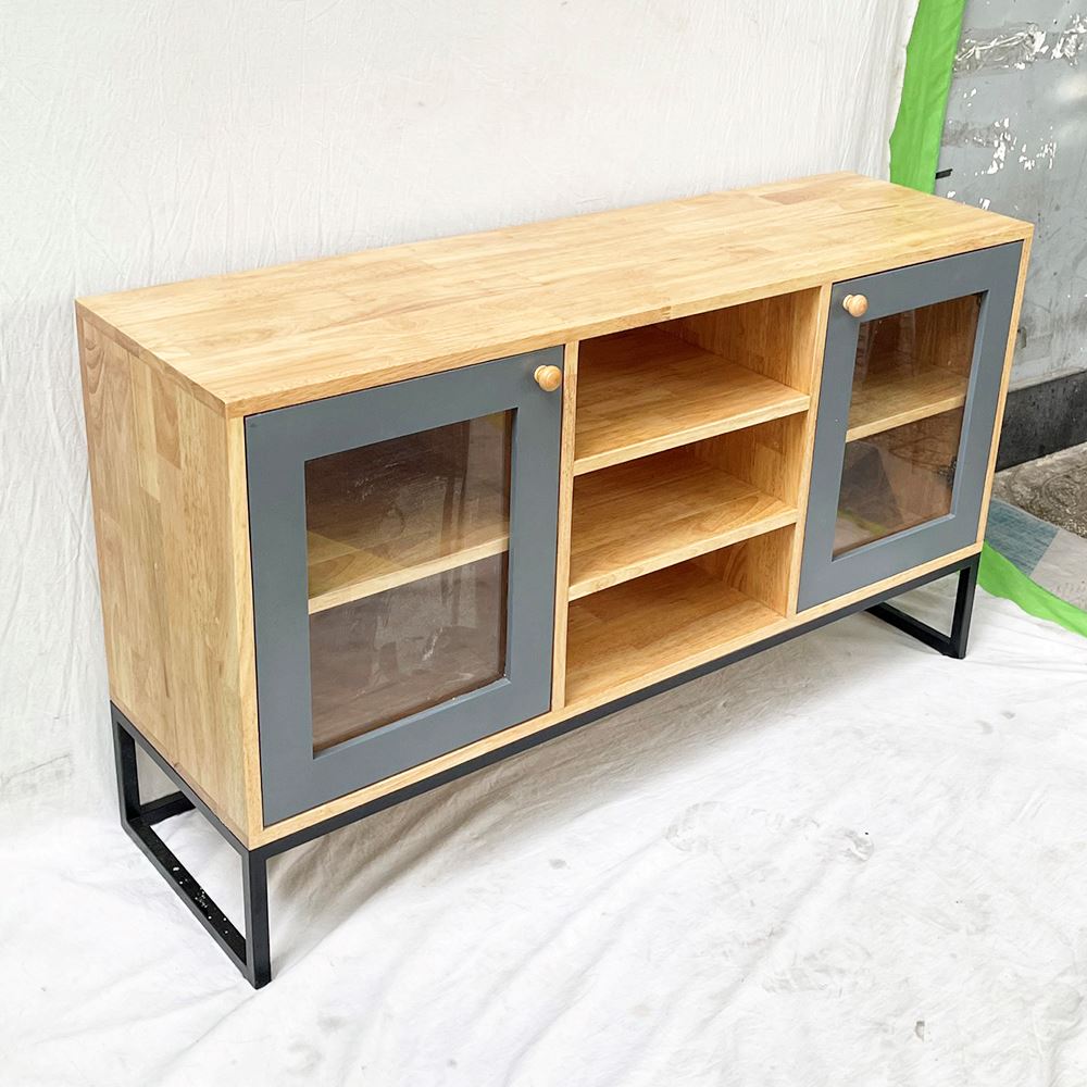 Tủ trang trí gỗ cao su khung sắt KTB68113 với chiều dài 1m2 và chiều rộng 35cm phù hợp với các không gian phòng khách vừa và nhỏ. Chất liệu chính là gỗ cao su tiêu chuẩn AA dày 17mm sơn PU hoàn thiện màu sắc đẹp kết hợp các hệ hộc kéo và ngăn mở đẹp mắt phối màu hợp lý sẽ giúp không gian nhà bạn thêm đẹp hơn. Chân sắt sơn tĩnh điện chống rỉ sét đảm bảo độ bền cao cũng như tính thẩm mỹ cho sản phẩm.