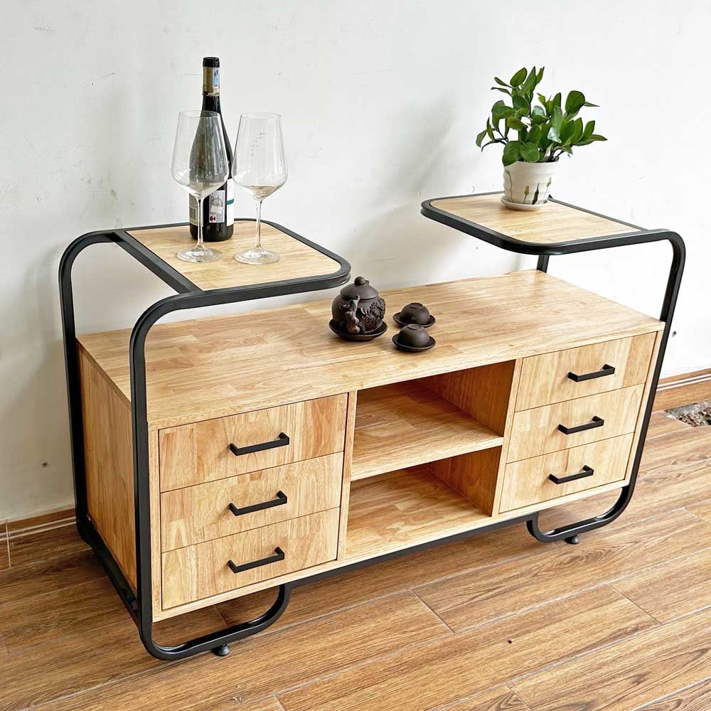 Tủ trưng bày được sử chất liệu chính là gỗ cao su ghép, đạt tiêu chuẩn xuất khẩu AA. Bề mặt gỗ đã được xử lý bằng sơn PU chống thấm. Ngoài ra, bạn có thể lựa chọn 5 màu khác tùy thích, phù hợp với nhiều không gian và phong cách mà cá nhân đang hướng tới. Khung chân sắt được hoàn thiện cẩn thận, mang nét thanh mảnh nhưng vẫn đảm bảo sự chắc chắn và ổn định. Bề mặt sắt được phủ lớp sơn tĩnh điên cao cấp chống rỉ sét, chống trầy, đảm bảo bộ bền bỉ theo thời gian.