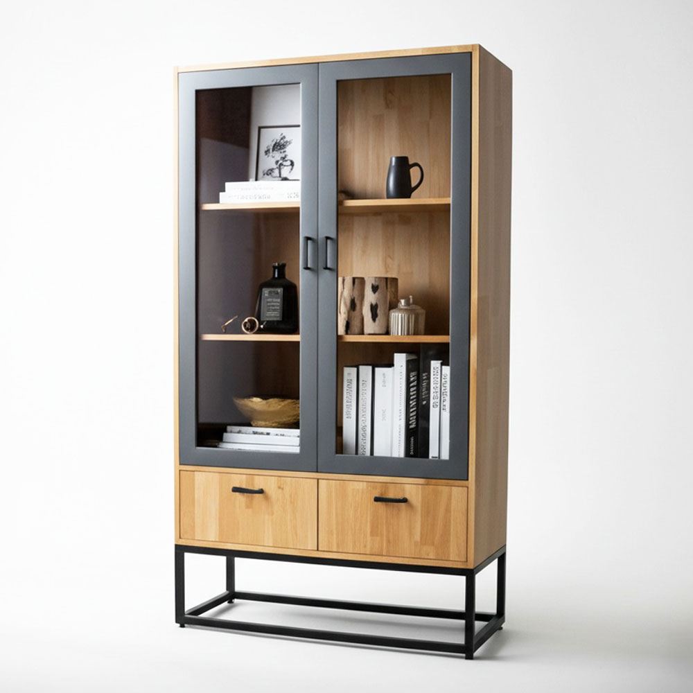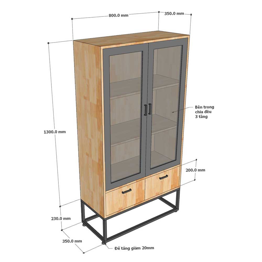 Tủ trang trí cửa kính 80x35x155 gỗ cao su KTB68213