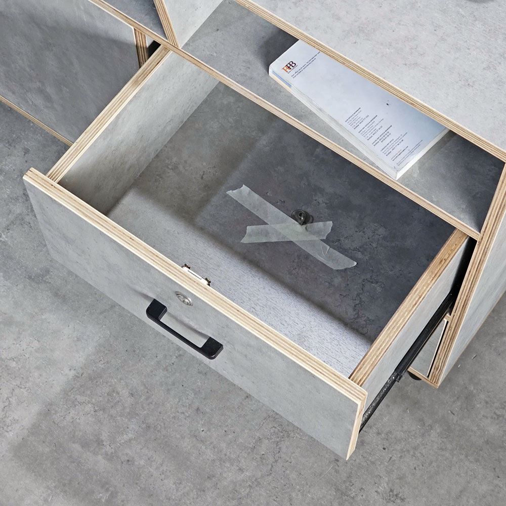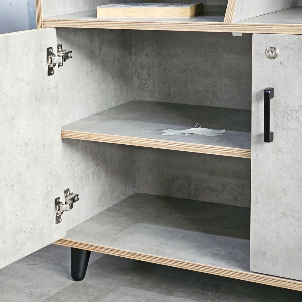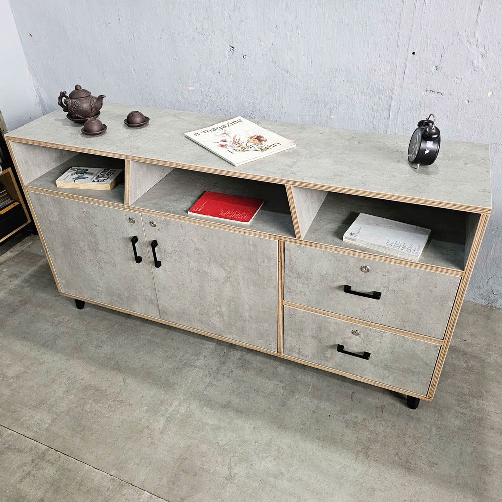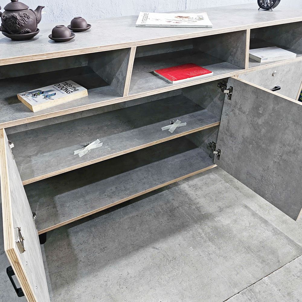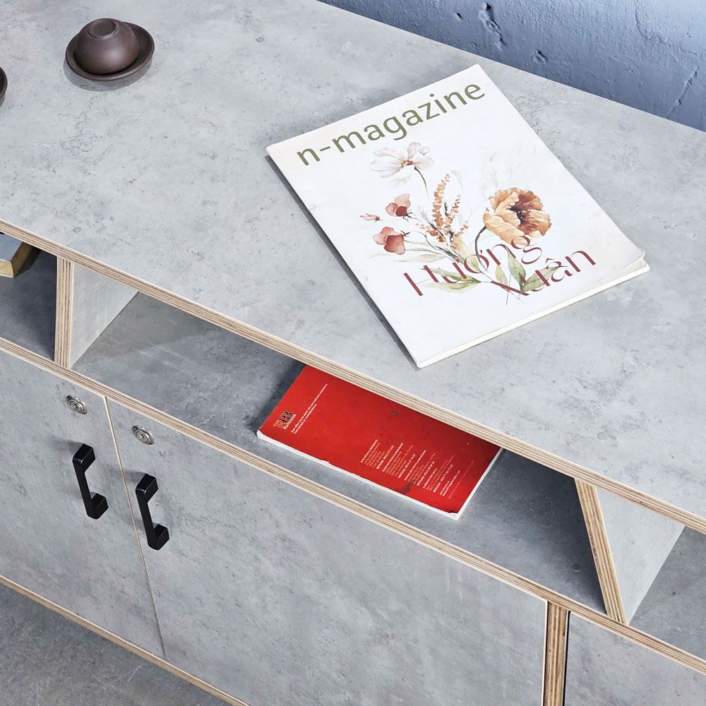 Tủ được làm hoàn toàn từ ván gỗ plywood, một loại vật liệu có độ bền bỉ vượt trội. Bề mặt ván gỗ plywood được phủ một lớp melamin chống thấm, chống trầy xước, giúp bảo vệ bề mặt tủ khỏi những tác động bên ngoài. Đặc biệt là phần viền cạnh ván được để lộ, tạo nên một vẻ đẹp cá tính, mạnh mẽ, phù hợp với những người am hiểu về plywood và trân trọng vẻ đẹp nguyên bản của vật liệu. Việc sử dụng gỗ plywood không chỉ mang lại độ bền cho sản phẩm mà còn thể hiện sự quan tâm đến môi trường. Plywood được sản xuất từ gỗ rừng trồng, góp phần bảo vệ nguồn tài nguyên thiên nhiên.