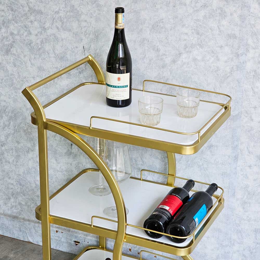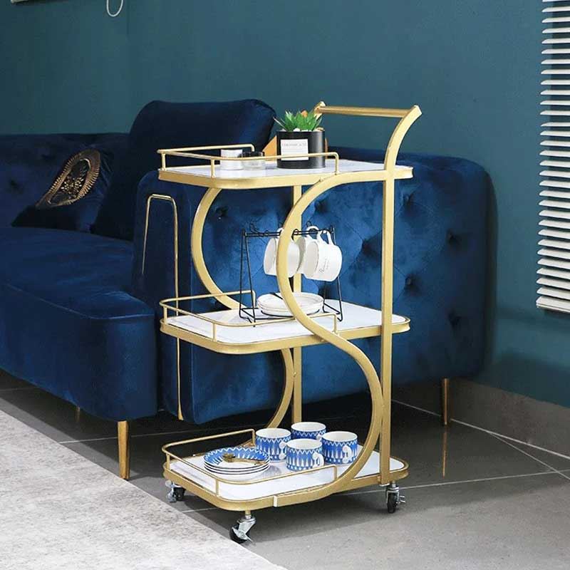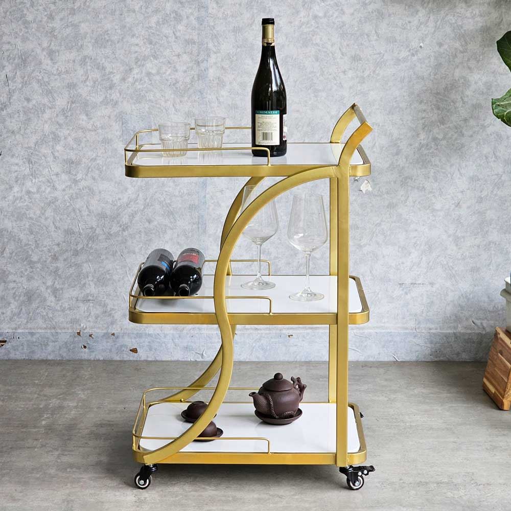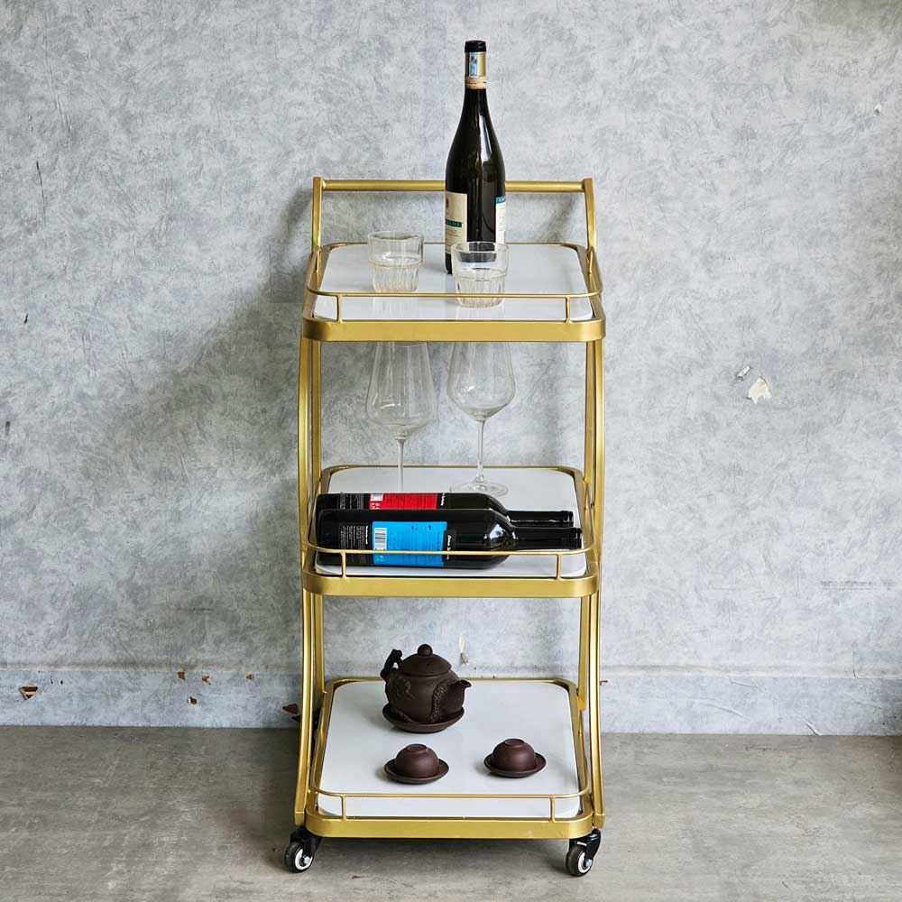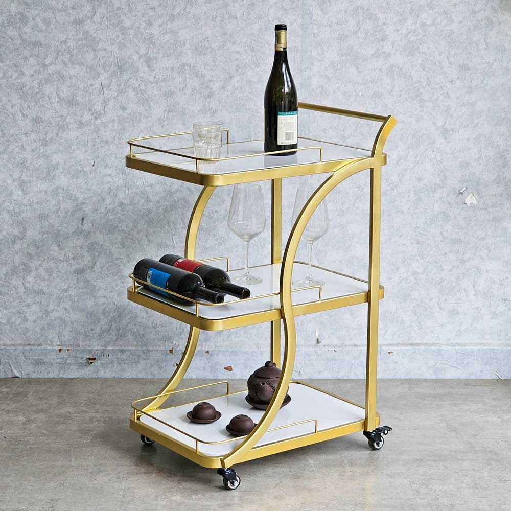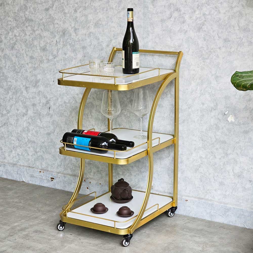 Xe đẩy rượu SST034 được thiết kế với 3 tầng kệ rộng rãi, giúp bạn dễ dàng sắp xếp và trưng bày các chai rượu vang, ly tách hay những vật dụng trang trí khác. Thiết kế thanh sắt uốn cong tạo hình lượn sóng mềm mại không chỉ mang tính thẩm mỹ cao mà còn giúp cho các tầng kệ thêm chắc chắn và ổn định.