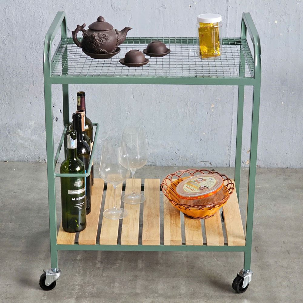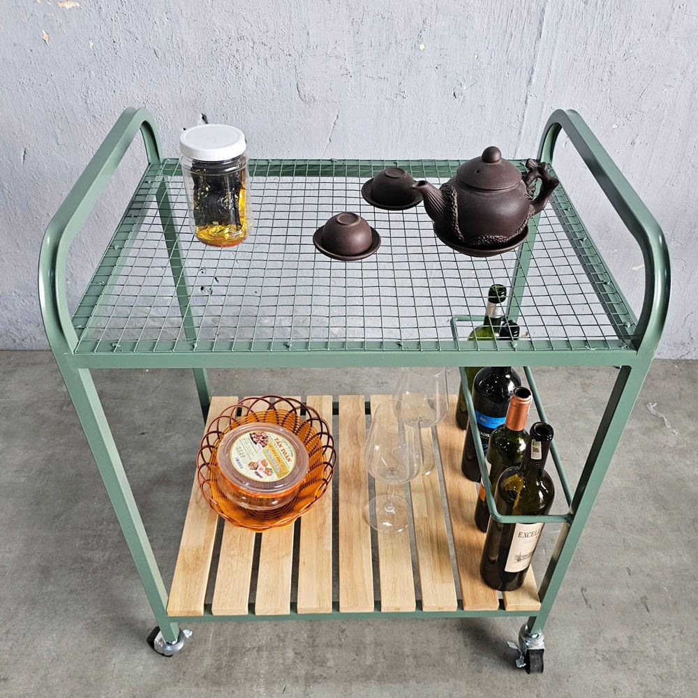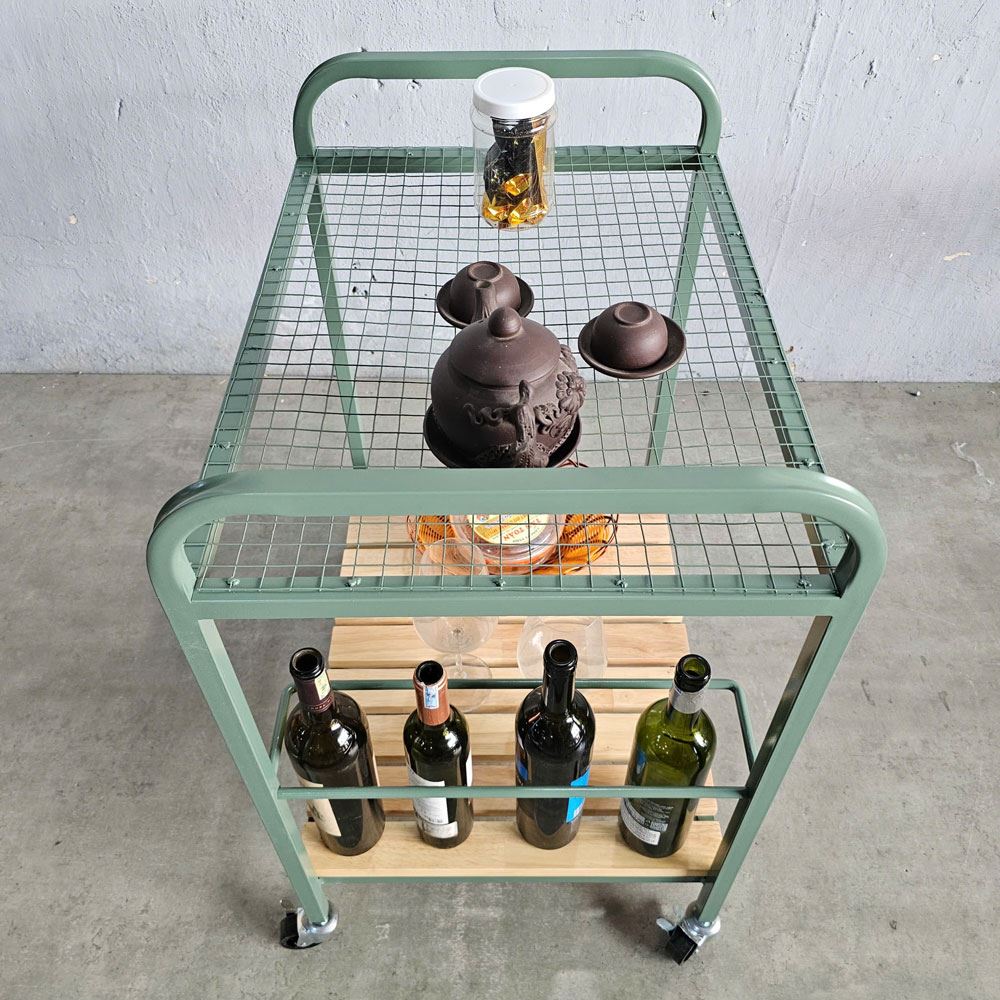 Xe đẩy rượu trà KB68055 sở hửu kiểu dáng thiết kế tinh tế và hiện đại. Không quá cầu kỳ, rườm rà, sản phẩm tập trung vào sự đơn giản, gọn gàng nhưng vẫn toát lên vẻ sang trọng và lịch lãm. Kệ được thiết kế với hai tầng, tầng trên là mặt lưới kim loại chắc chắn, tạo không gian thoáng đãng để đựng các vật dụng cần thiết. Tầng dưới là mặt gỗ cao su AA chuẩn xuất khẩu, không chỉ tăng thêm vẻ đẹp thẩm mỹ mà còn mang đến sự chắc chắn và bền bỉ cho sản phẩm.