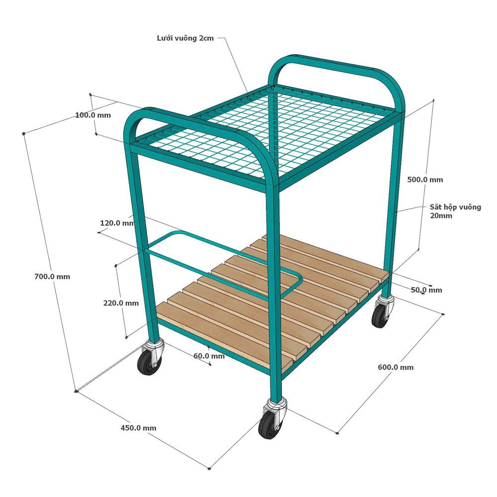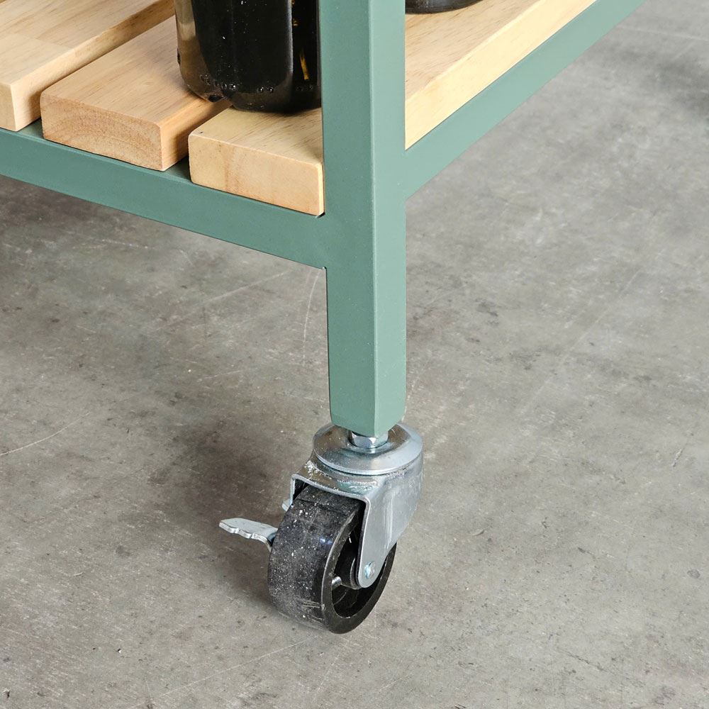 Khả năng di chuyển linh hoạt nhờ 4 bánh xe chịu lực giúp bạn có thể dễ dàng di chuyển kệ đến bất kỳ vị trí nào trong nhà, từ phòng khách, phòng bếp đến phòng ăn hay thậm chí là không gian ngoài trời. Điều này giúp bạn tận dụng tối đa không gian và dễ dàng thay đổi bố cục nội thất khi cần thiết. Khung chân của kệ được làm từ sắt hộp loại dày 1.2mm, đảm bảo sự chắc chắn và chịu lực tốt cho sản phẩm. Bề mặt sắt được sơn tĩnh điện, giúp chống gỉ sét và tăng độ bền cho khung chân.